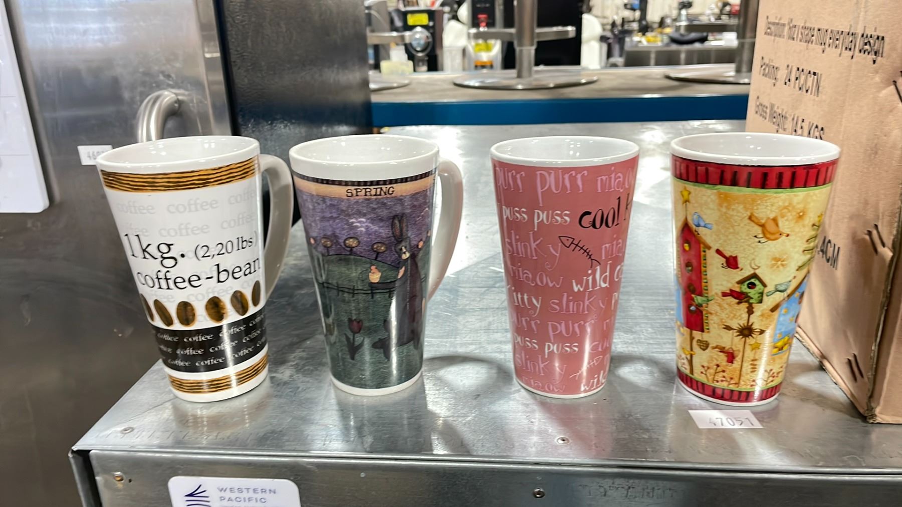 PALLET OF 16OZ V SHAPED EVERYDAY DESIGN MUGS APPROX 35 BOXES, 24 PCS PER BOX