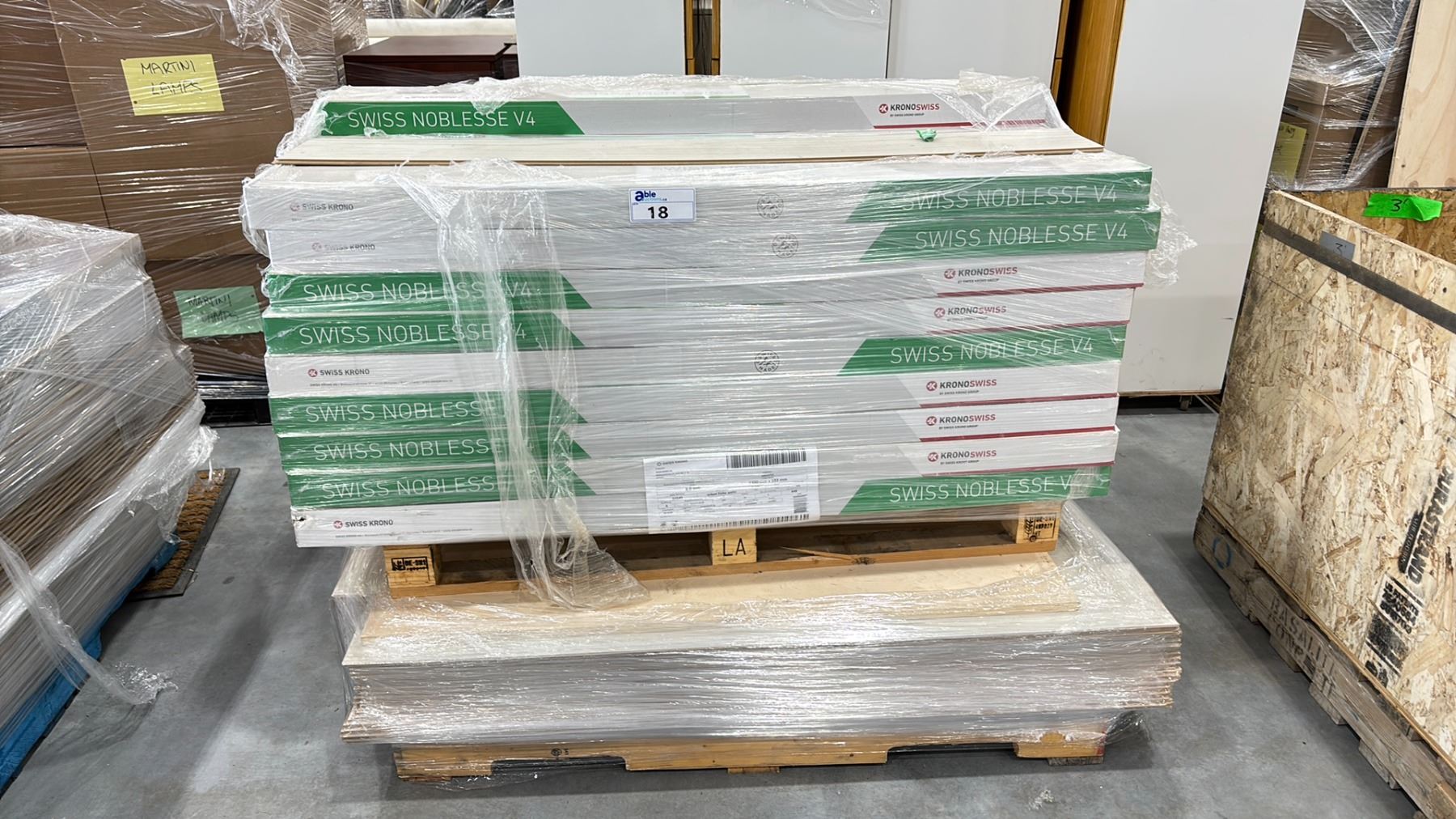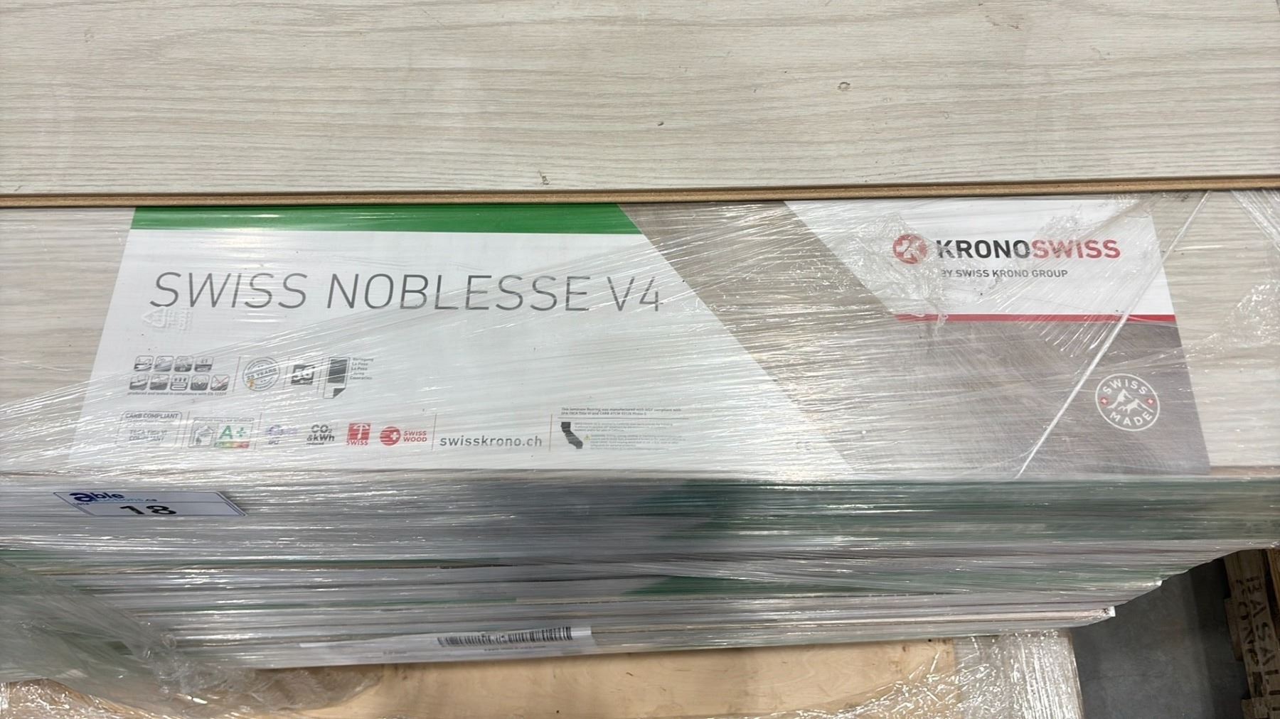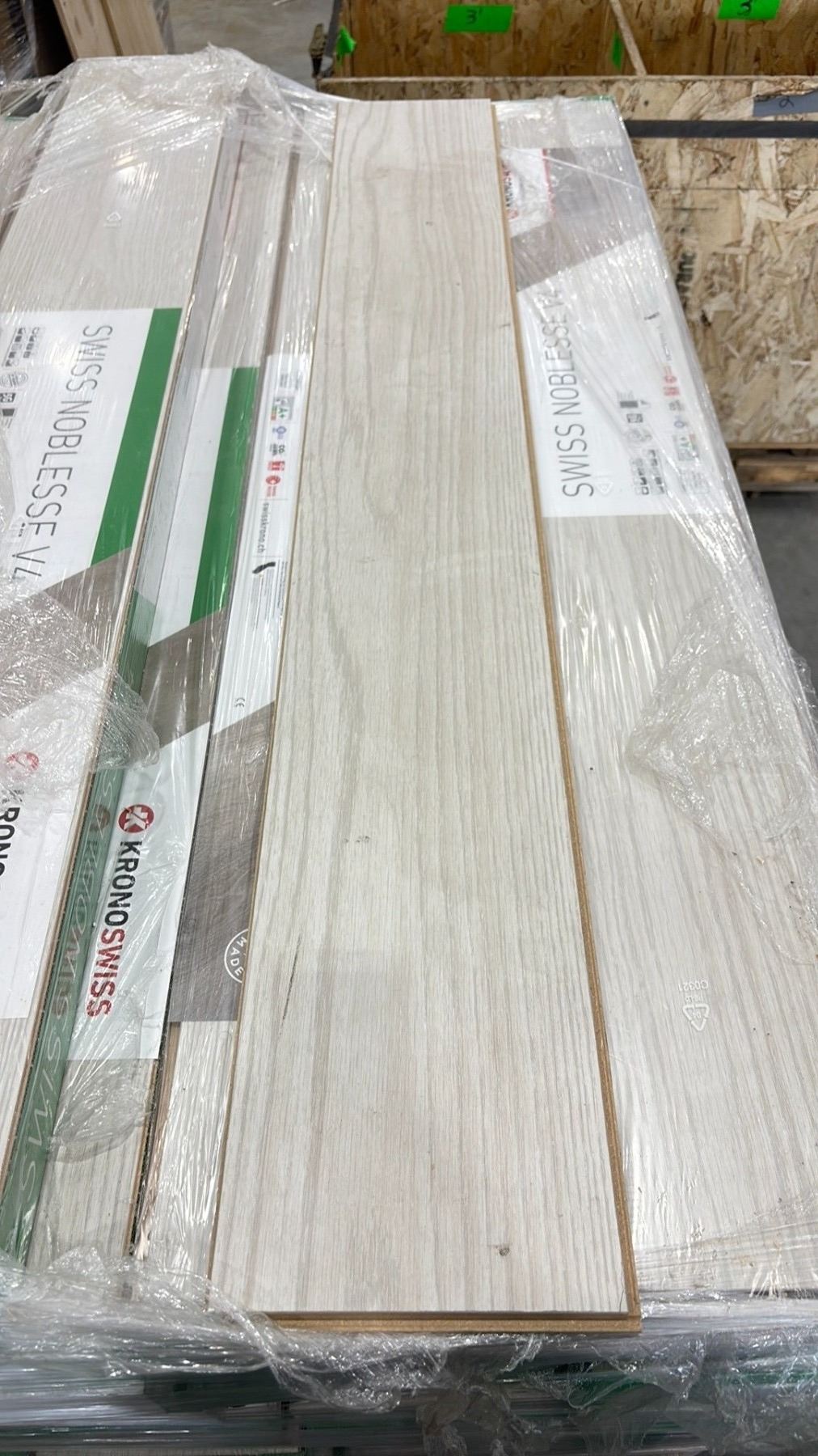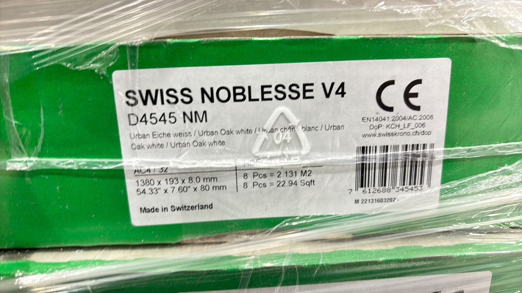 PALLET OF 17 BOXES OF SWISS NOBLESSE V4 D4545 NM URBAN OAK WHITE FLOORING 54.33" X 7.60" X 80MM - 8 PCS PER BOX - 1 BOX = 22.94 SQ. FT. - TOTAL = 389.98 SQ. FT. & PALLET OF UNKNOWN QUANTITY SWISS NOBLESS V4 D4545 NM URBAN OAK WHITE FLOORING