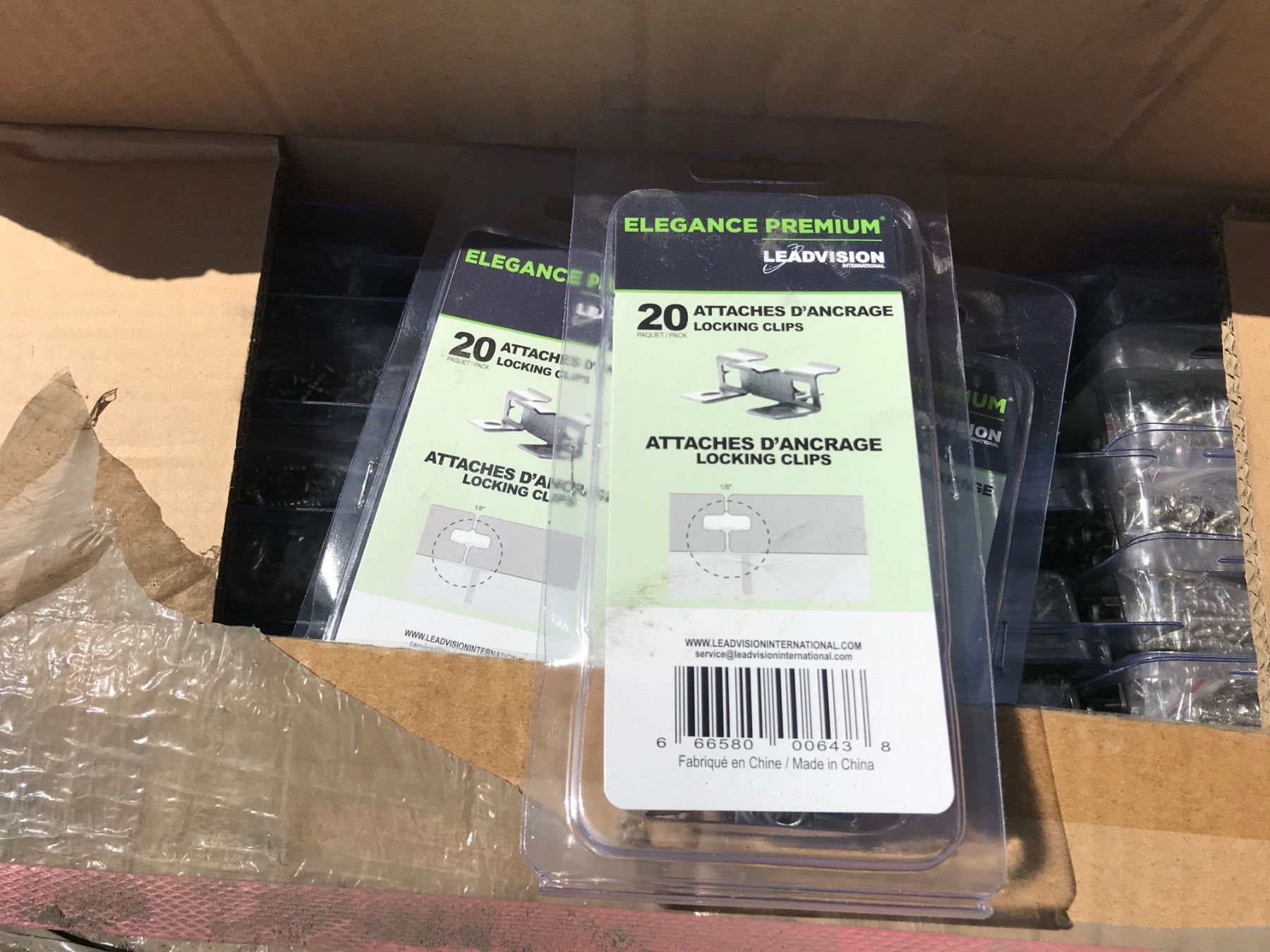 PALLET OF 18 BOXES 50 PIECE LEADVISION INTERNATIONAL FIXING AND STARTER CLIPS