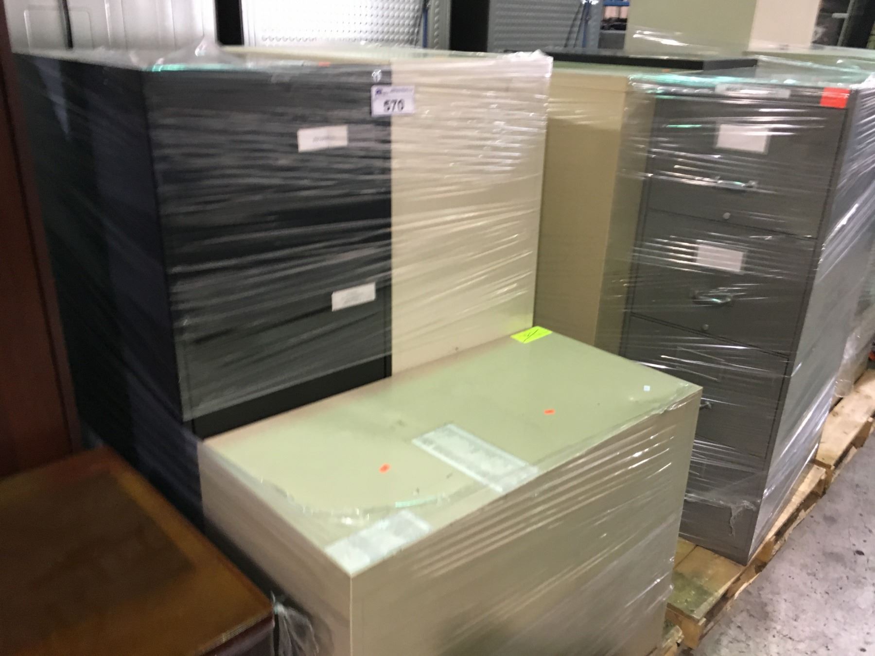 PALLET OF 2 METAL 4 DRAWER FILE CABINETS & 1 BEIGE 2 DRAWER LATERAL FILE CABINET