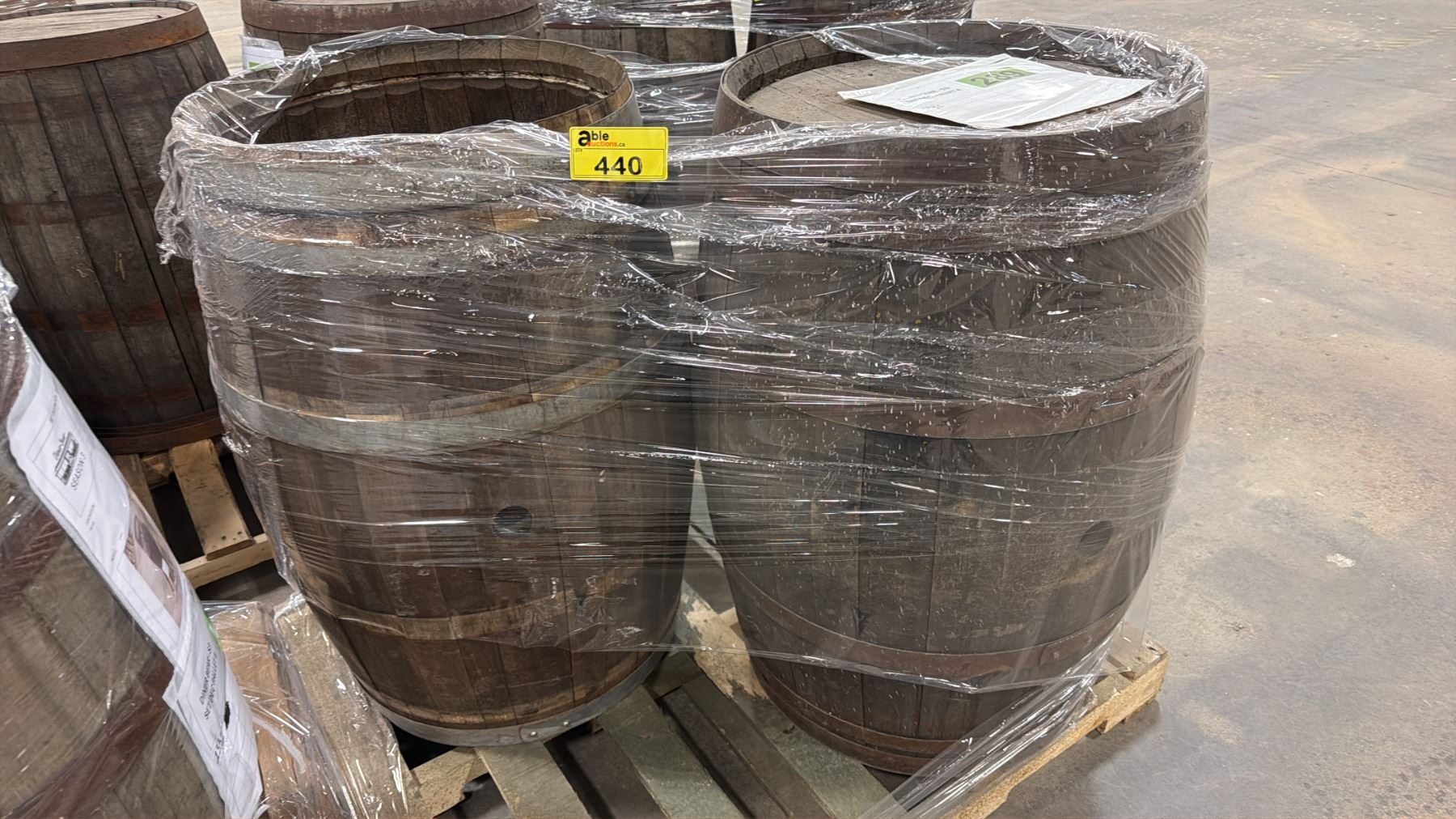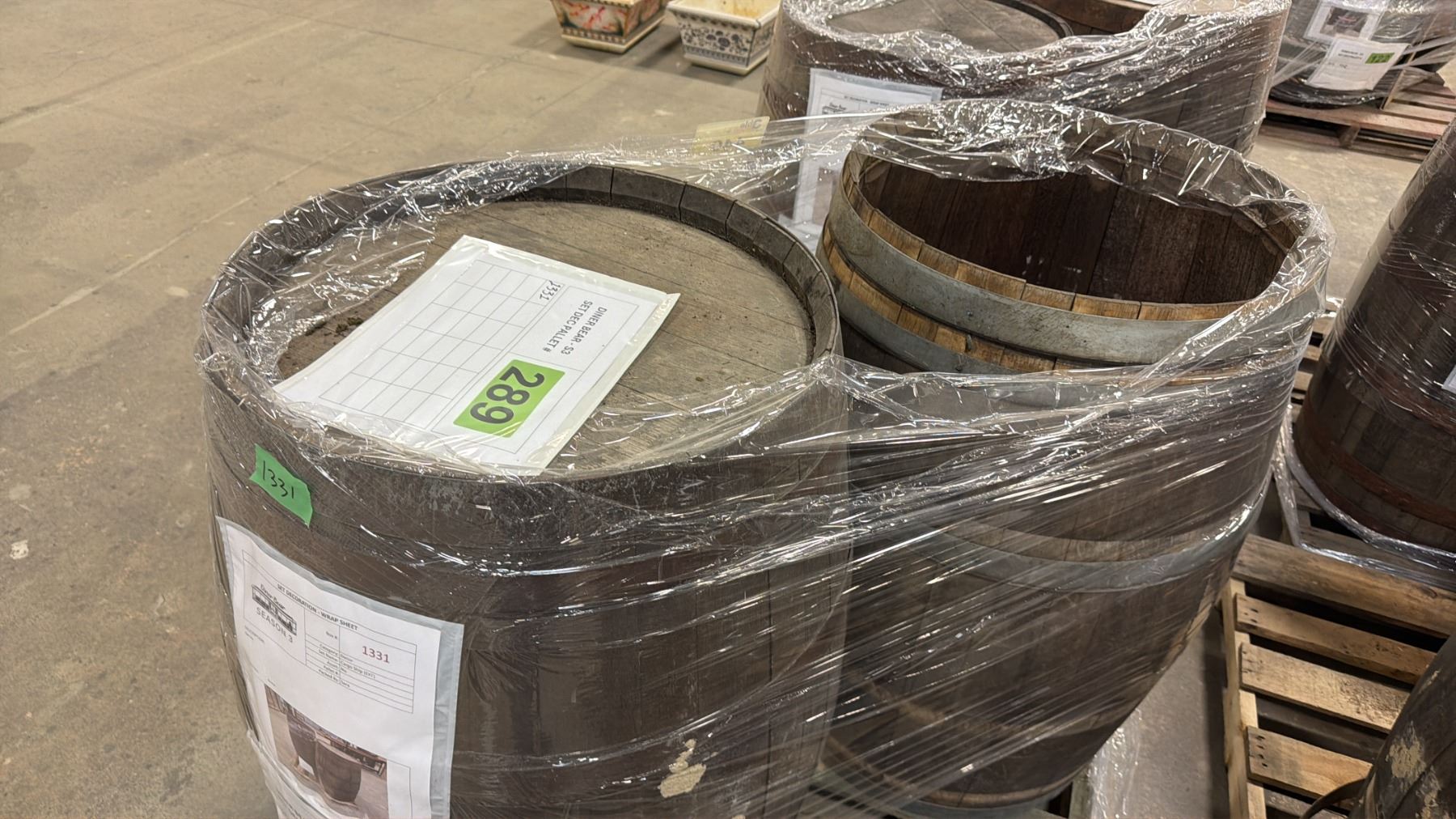 PALLET OF (2) SHOW PROP OAK BARRELS