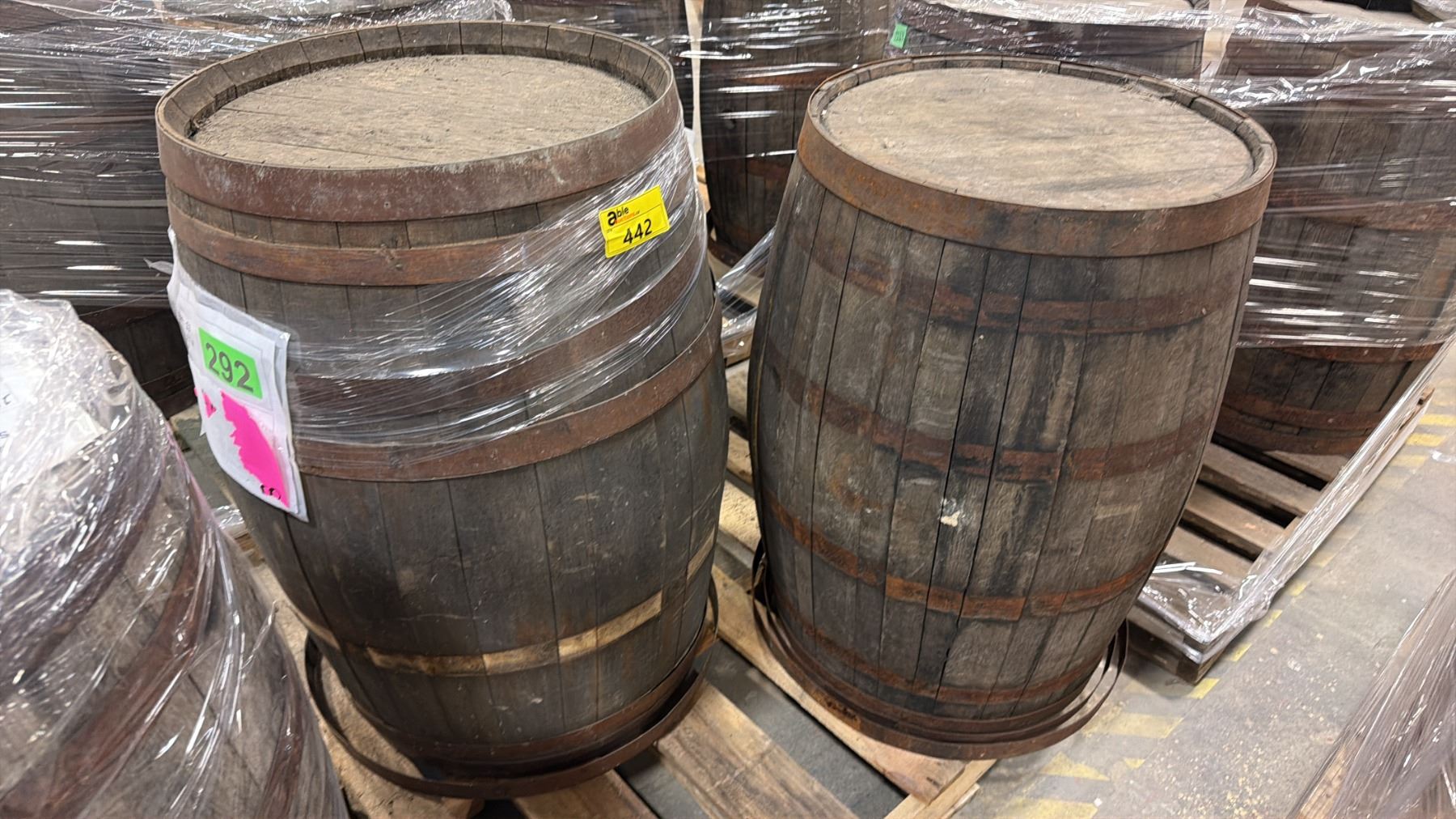 PALLET OF (2) SHOW PROP OAK BARRELS