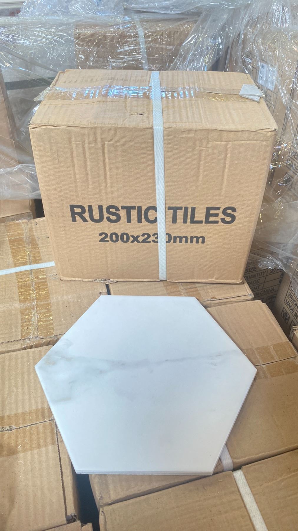 PALLET OF 200 X 230MM HEXAGON TILES APPROX 9.90SQ.FT. PER BOX, APPROX 105 BOXES, APPROX 1039SQ.FT. TOTAL
