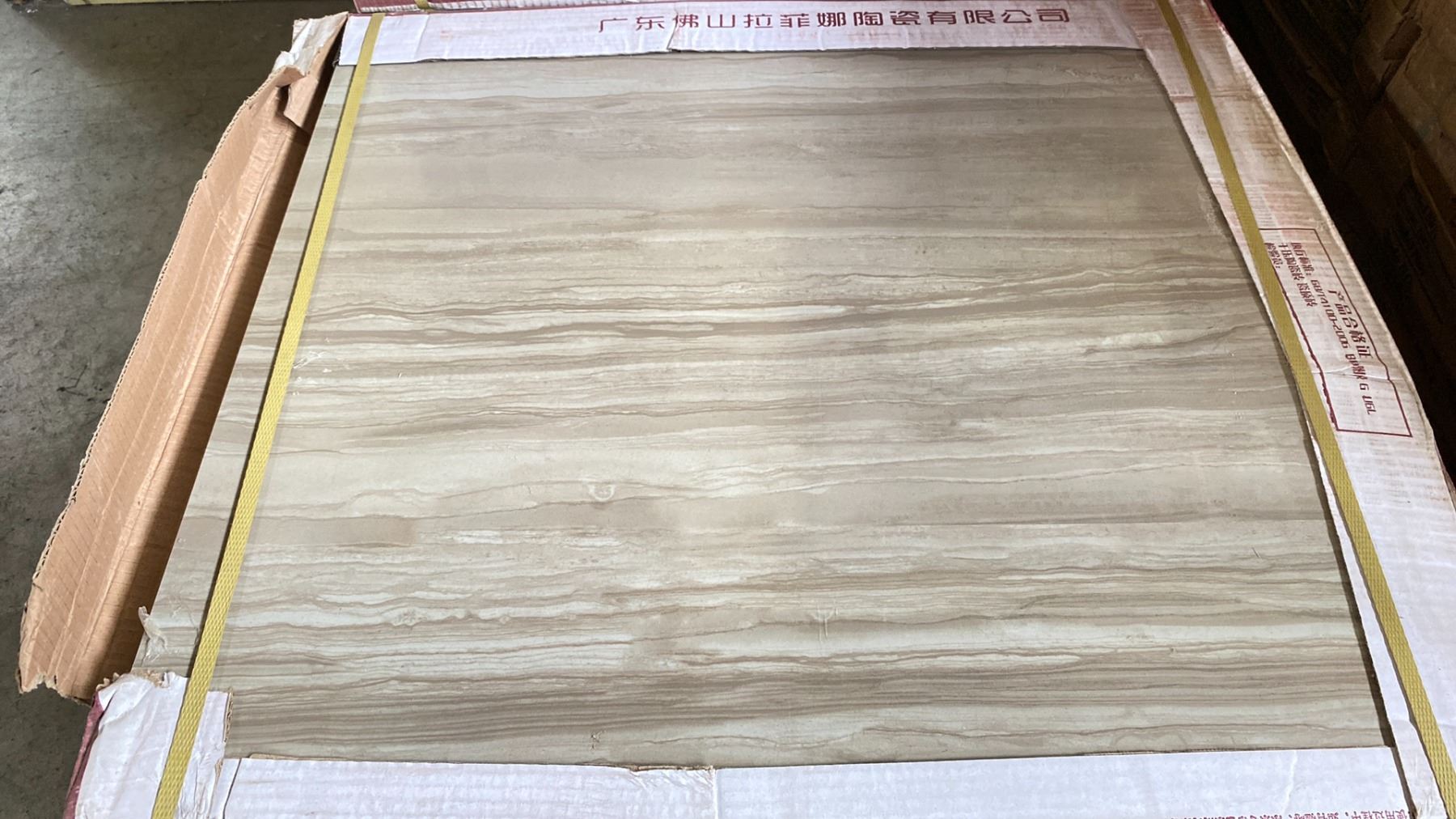 PALLET OF 24 X 24" PORCELAIN TILES IN TAUPE VEIN CUT TRAVERTINE APPROX 16SQ.FT. PER BOX APPROX 19 BOXES, APPROX 304SQ.FT. TOTAL