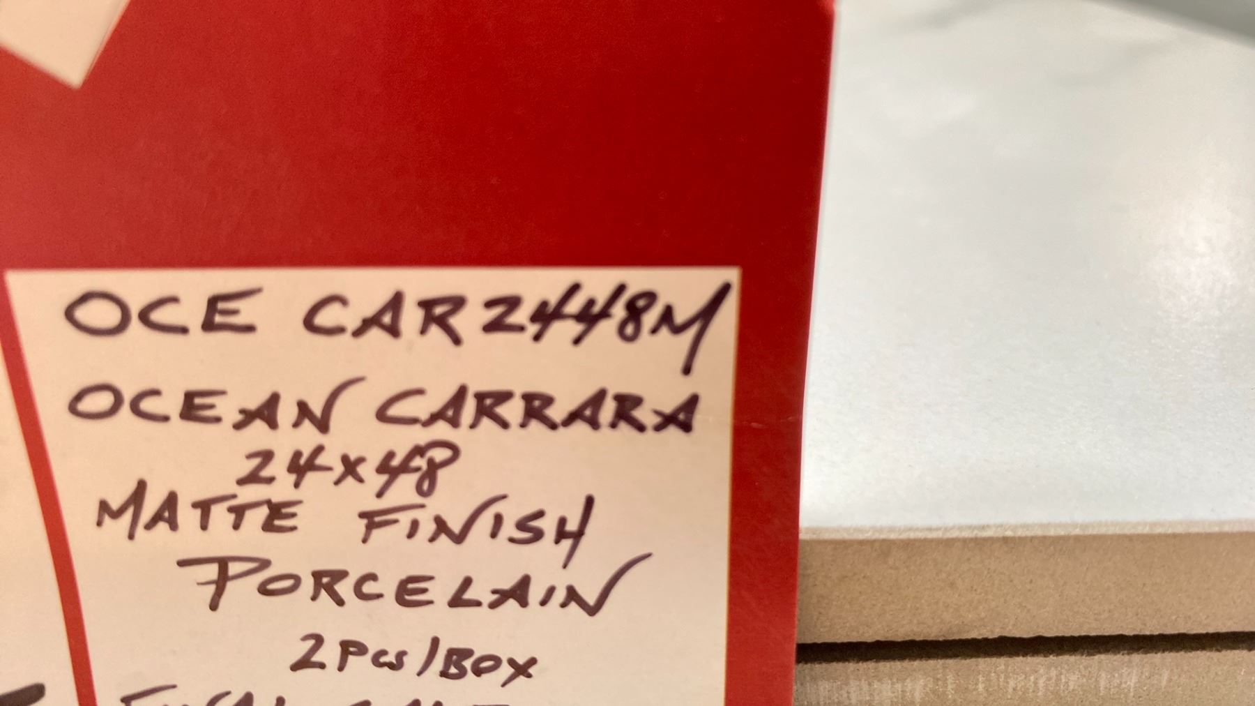 PALLET OF 24 X 48" PORCELAIN TILE IN OCEAN CARRERA, 16SQ.FT. PER BOX, APPROX 34 BOXES, APPROX