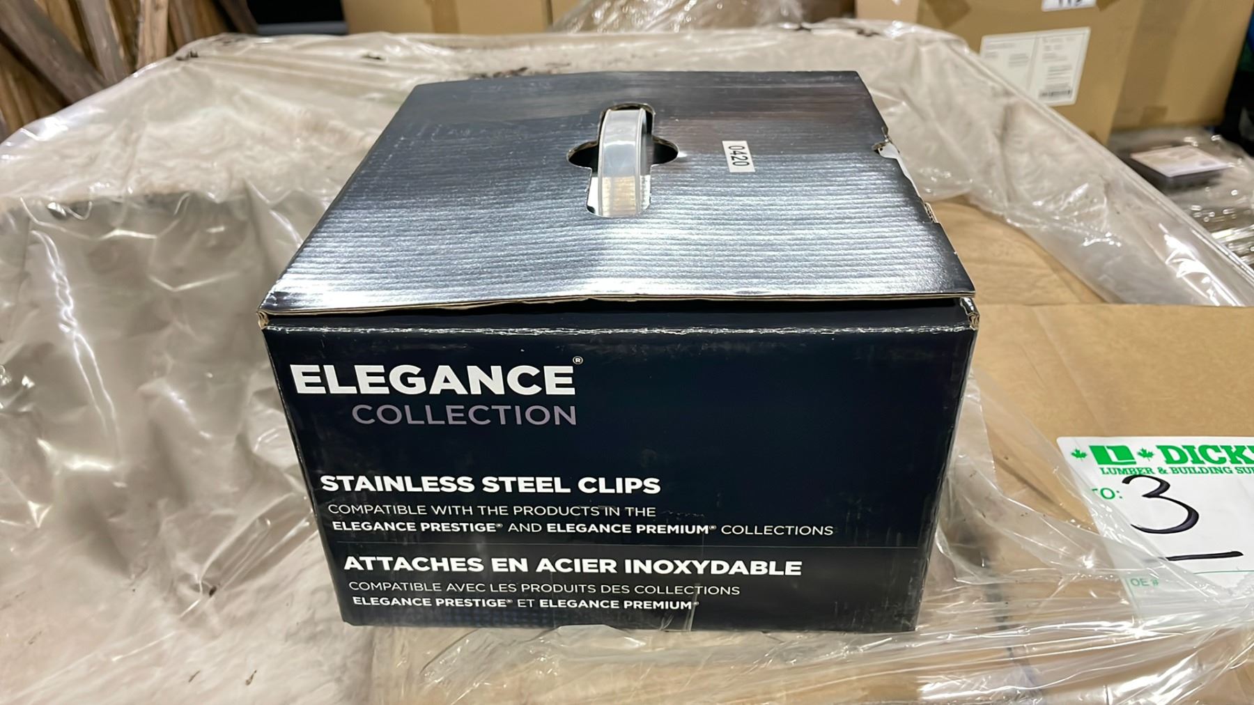 PALLET OF 256 SQ FT ELEGANCE COLLECTION STAINLESS STEEL CLIP FASTENERS *COMPATIBLE WITH PRESTIGE / PREMIUM COLLECTION* 27 BOXES *MUST TAKE ALL ON PALLET*