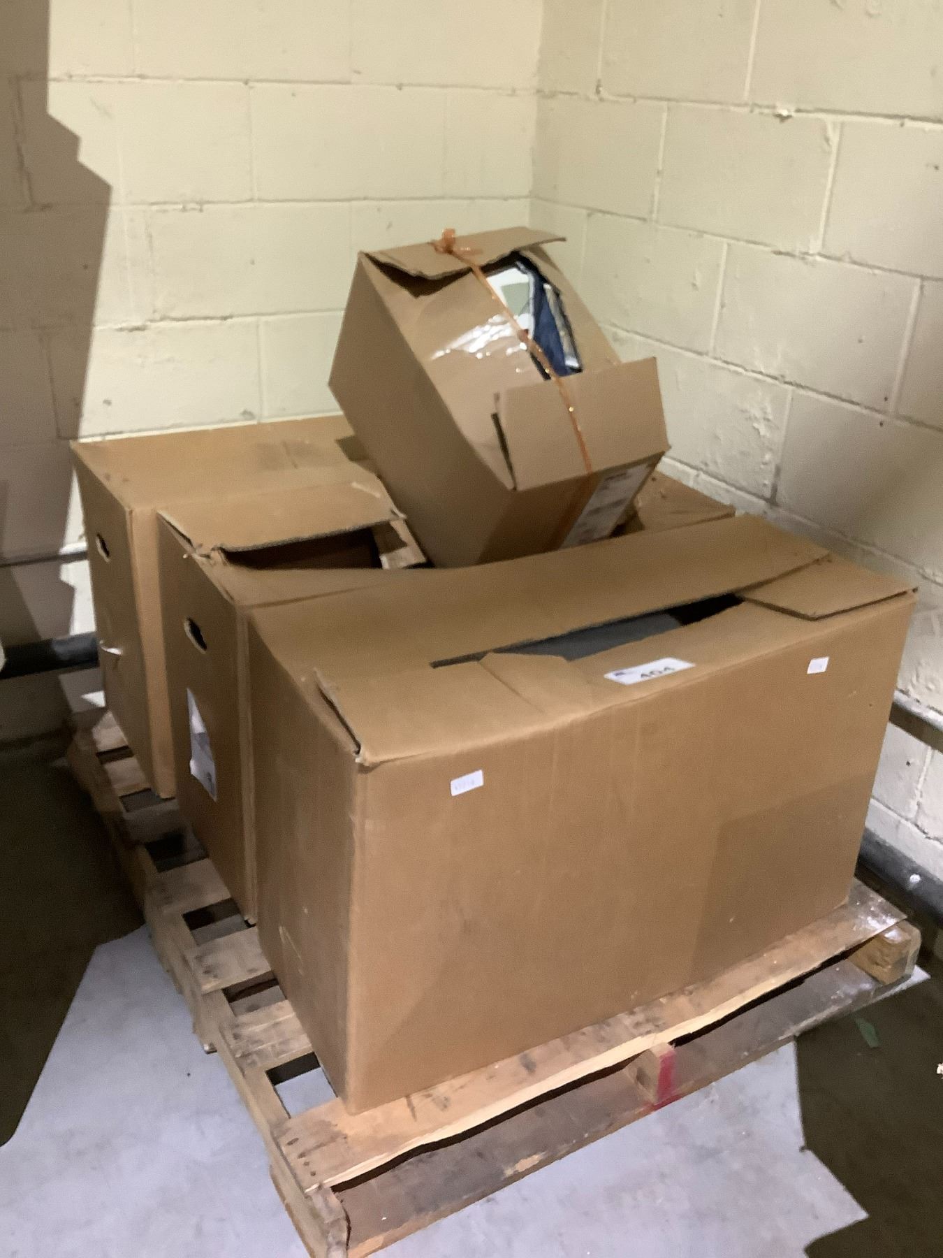 PALLET OF 3 AMC169DX450 ITEMS AND BOX OF ASSORTED TEXTILE SAMPLES