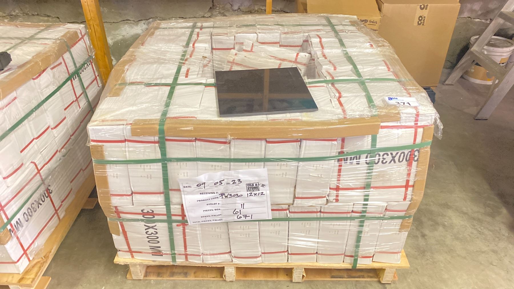 PALLET OF 300 X 300MM PORCELAIN TILE IN BLACK A8 APPROX 10.66SQ.FT. PER BOX, APPROX 61 BOXES, APPROX 650.26SQ.FT. TOTAL