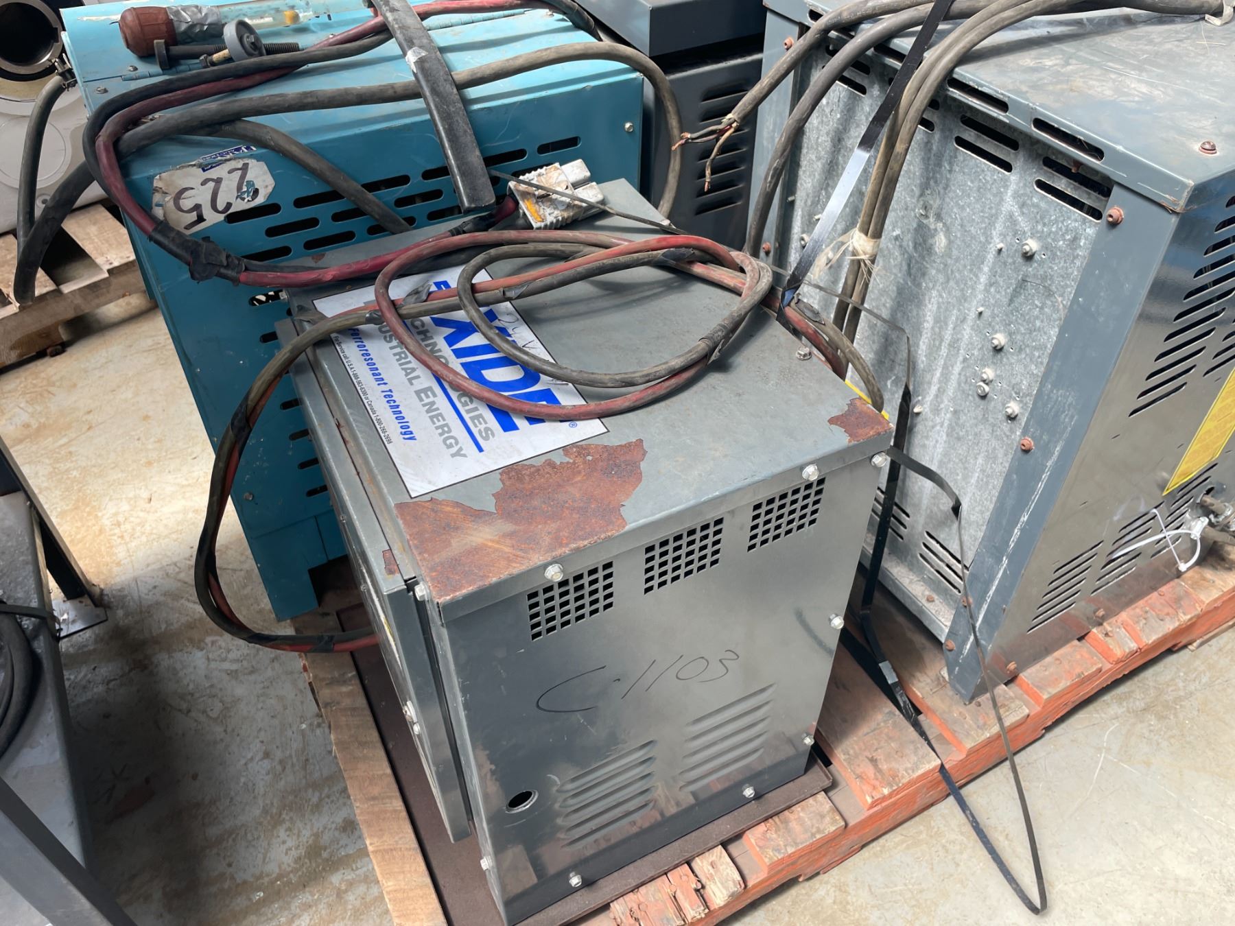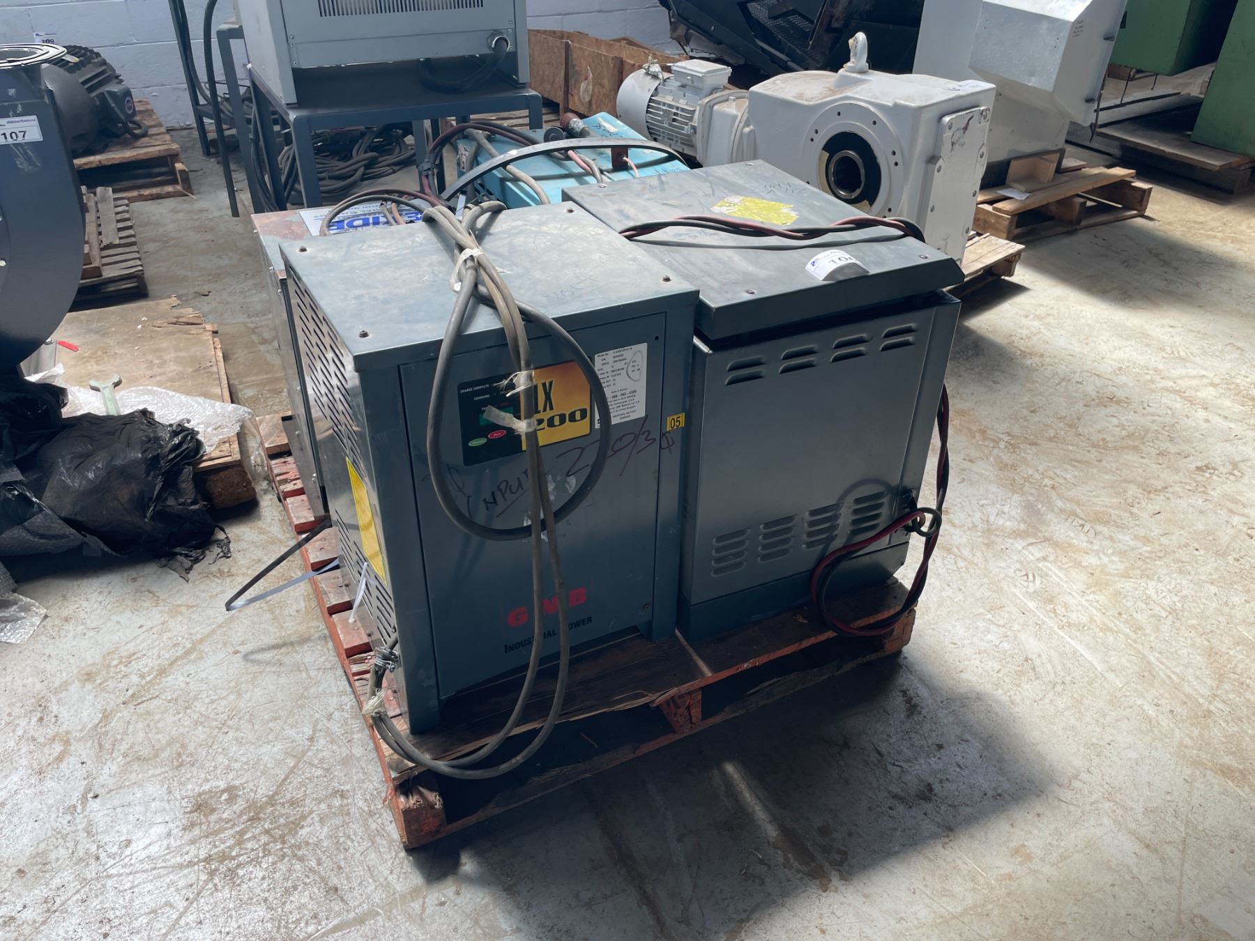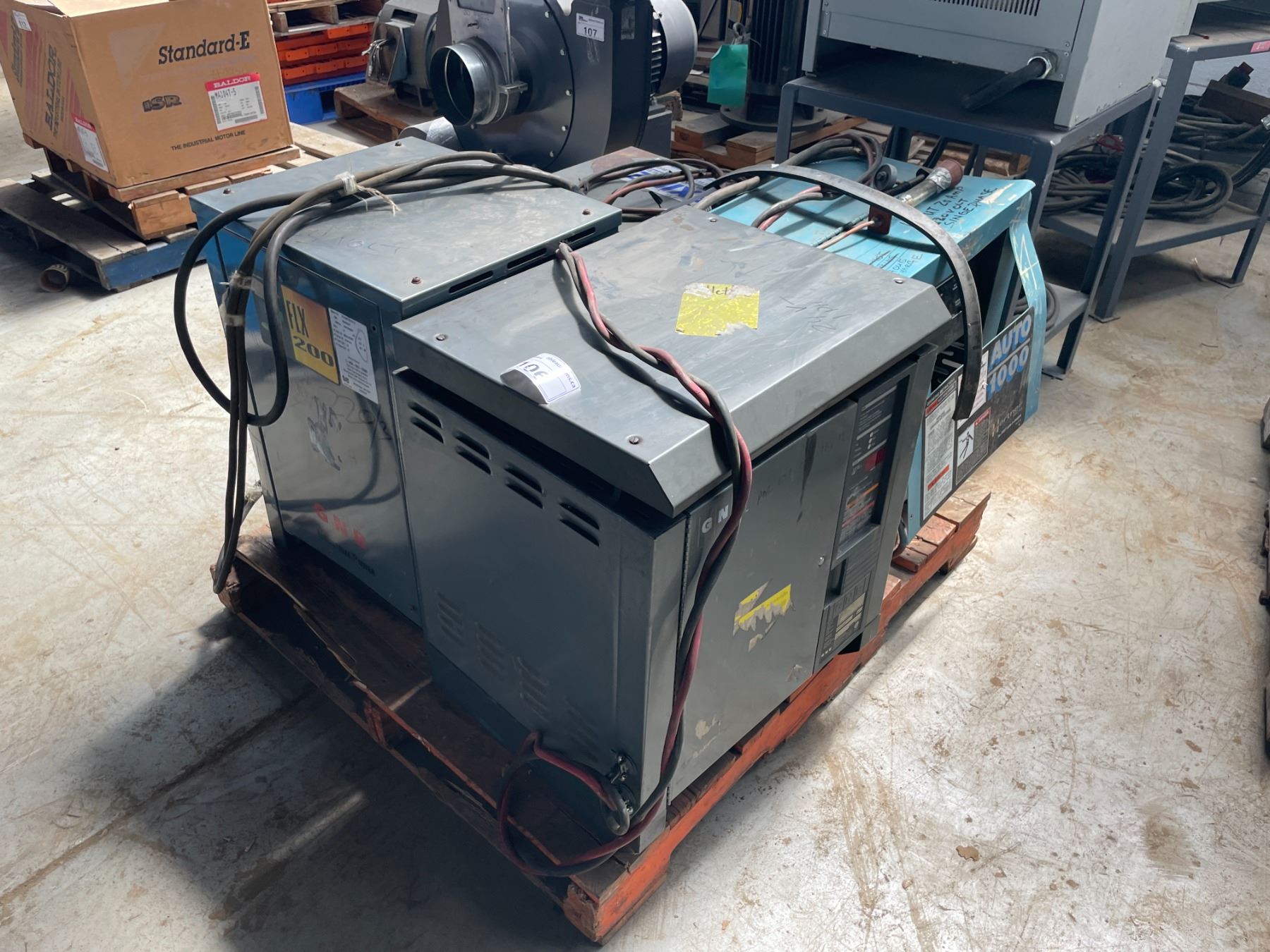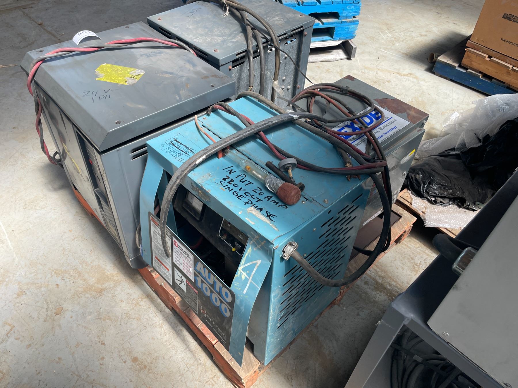PALLET OF 4 ASSORTED INDUSTRIAL FORKLIFT BATTERY CHARGERS