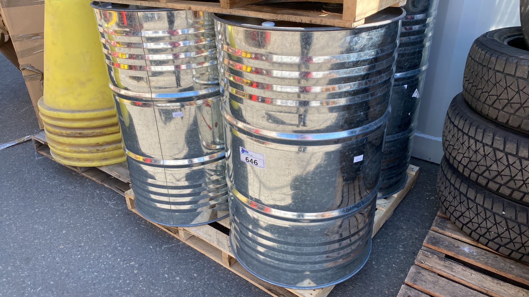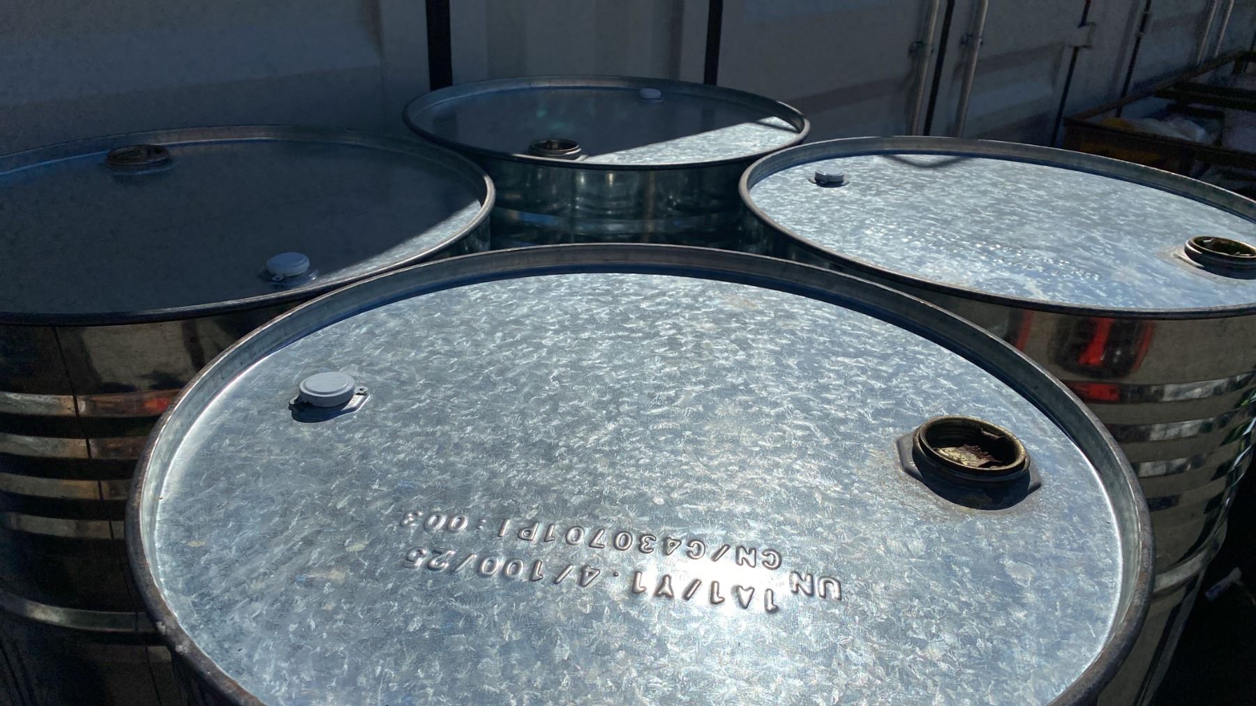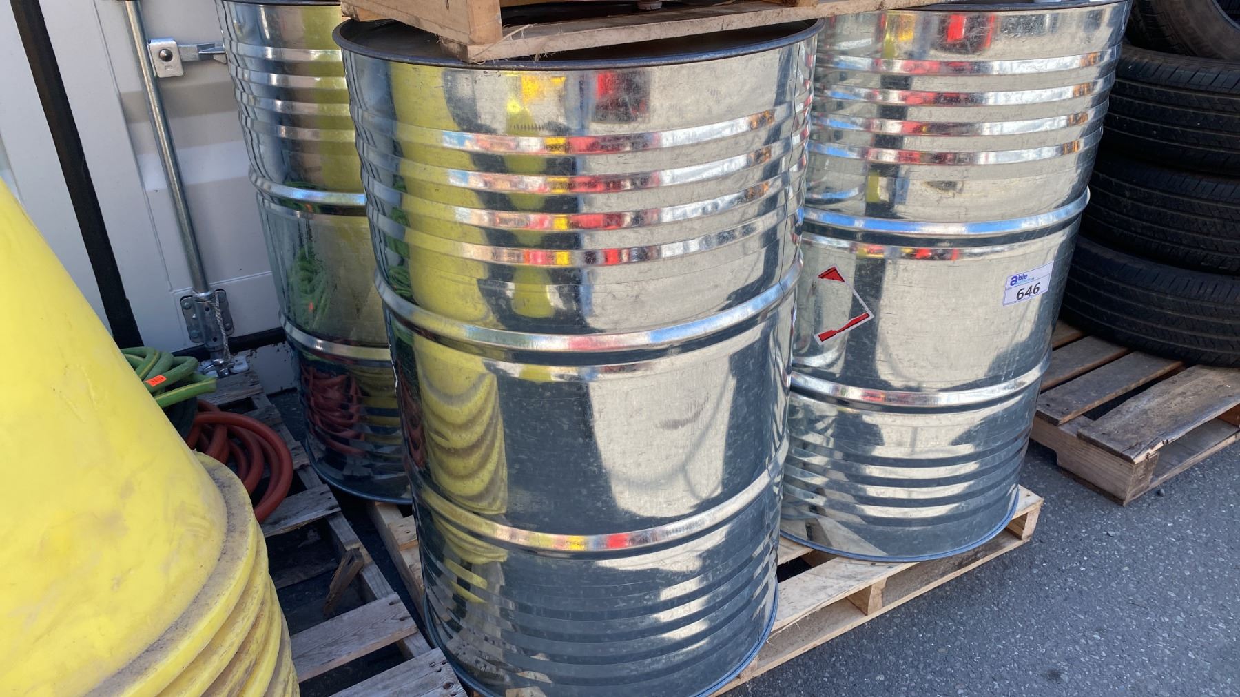 PALLET OF 4 INDUSTRIAL STEEL DRUMS