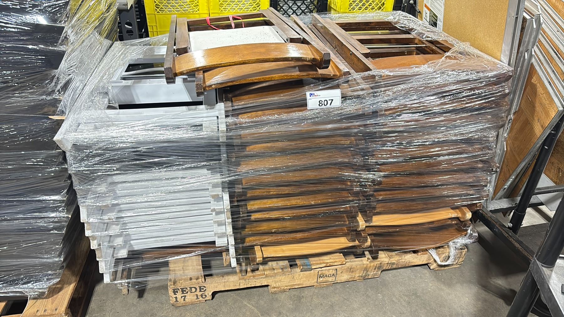 PALLET OF 40 ASSORTED BLACK / BROWN / WHITE WOODEN FOLDING EVENT CHAIRS