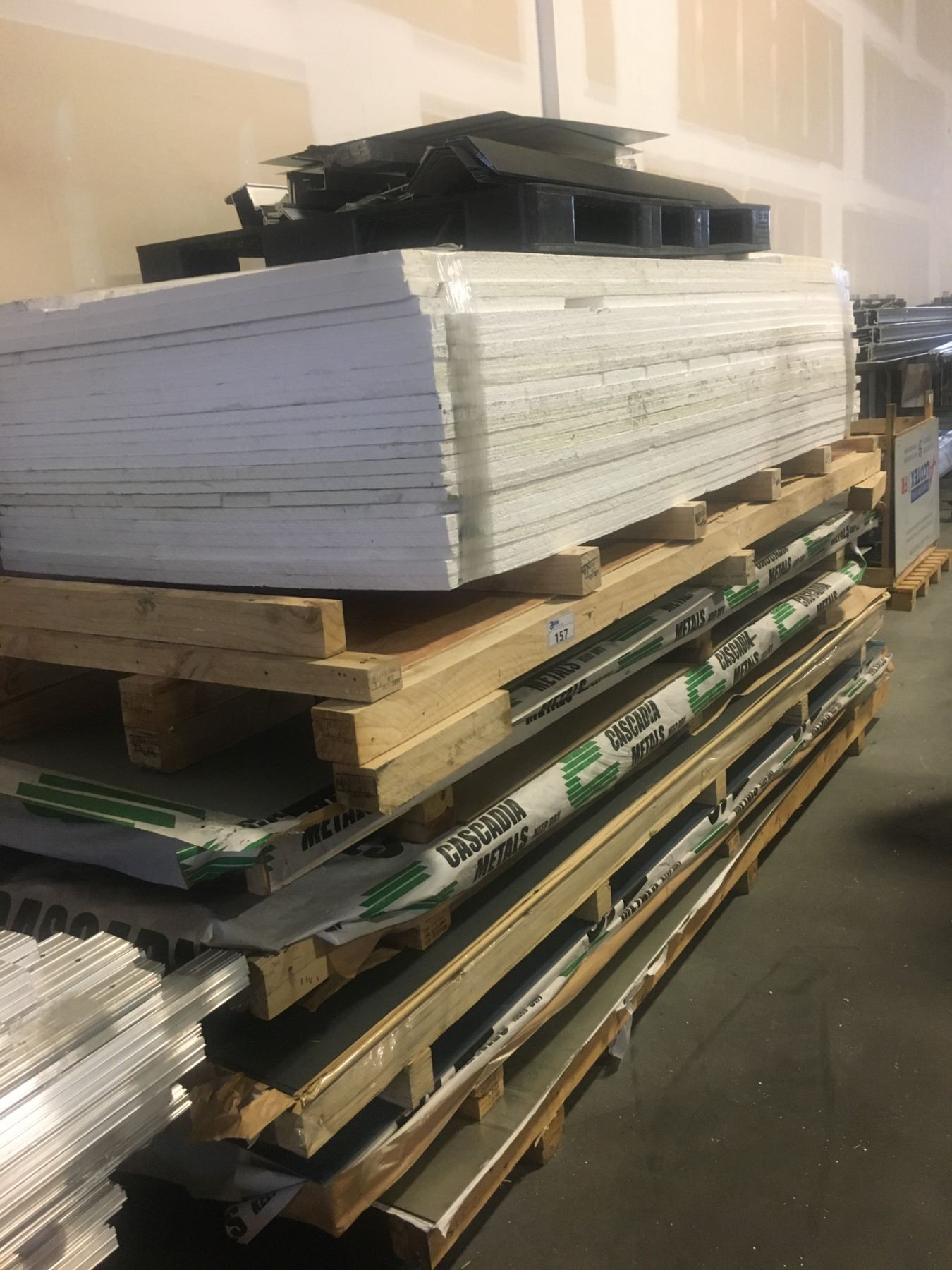 PALLET OF 4FT X 10FT ALUMINIUM SHEETS & BLACK PALLET OF ASSORTED ALUMINIUM FLAT BAR