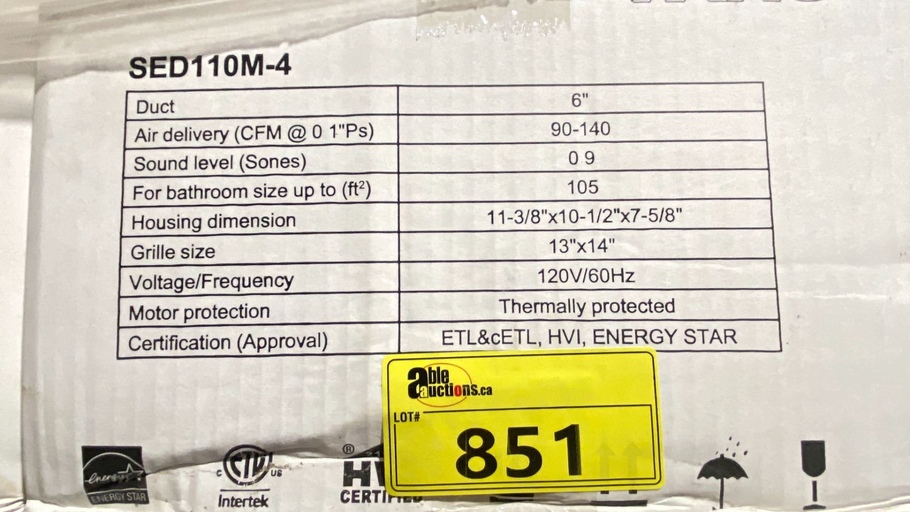 PALLET OF 55 STERLING FANS SED110M-4 EXHAUST FOR BATHROOM UP TO 105 SQ FT WITH A 6" DUCT