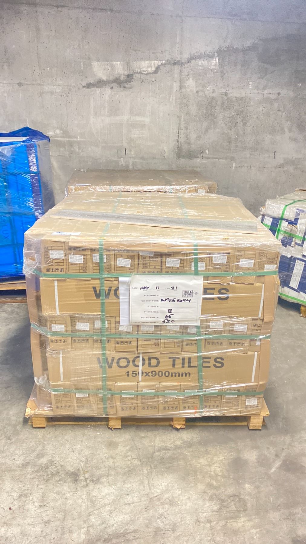 PALLET OF 6 X 36" PORCELAIN TILES IN N9153094, 15SQ.FT. PER BOX, APPROX 65 BOXES, APPROX 1040SQ.FT. TOTAL