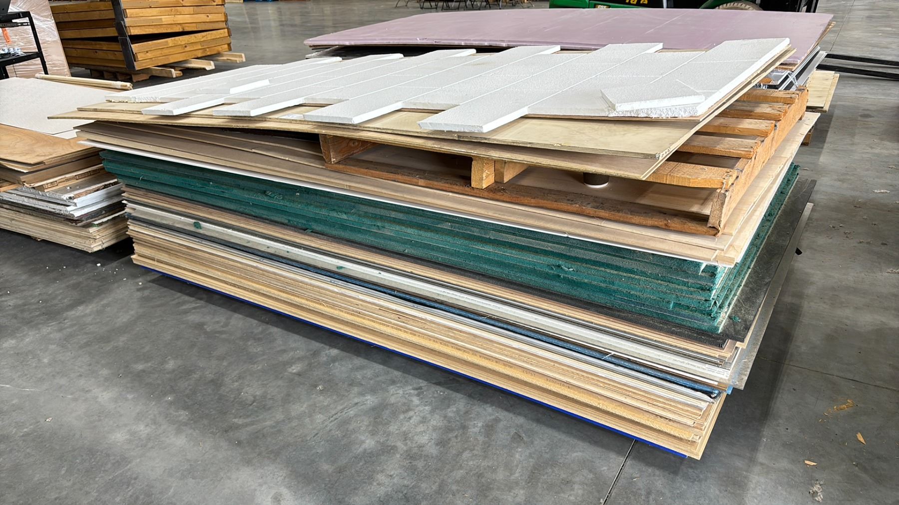 PALLET OF 8'L X 4'W PLYWOOD PANELS, FOAM PANELS & MORE