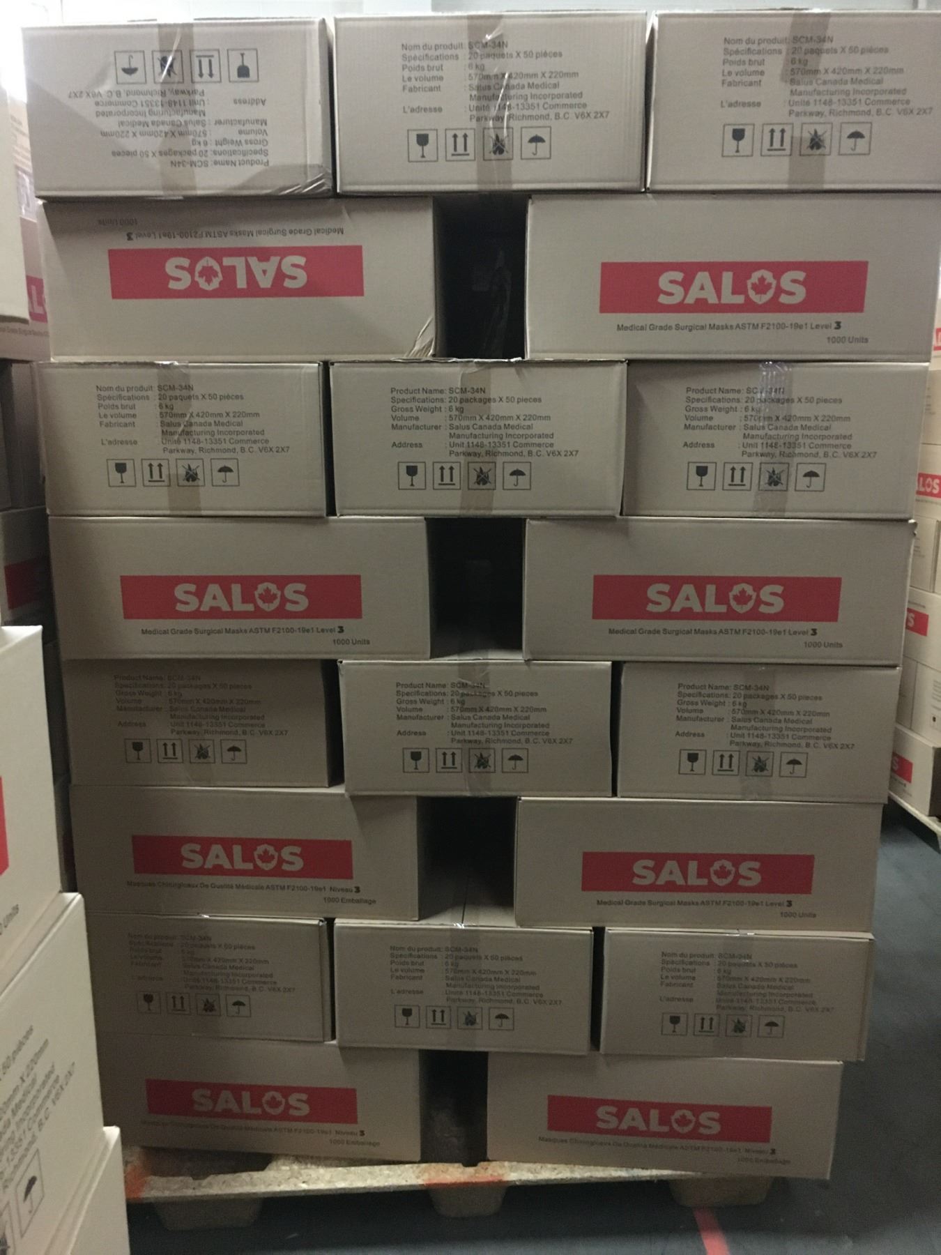 PALLET OF APPROX. 40 BOXES OF NEW SALOS MEDICAL GRADE SURGICAL MASKS