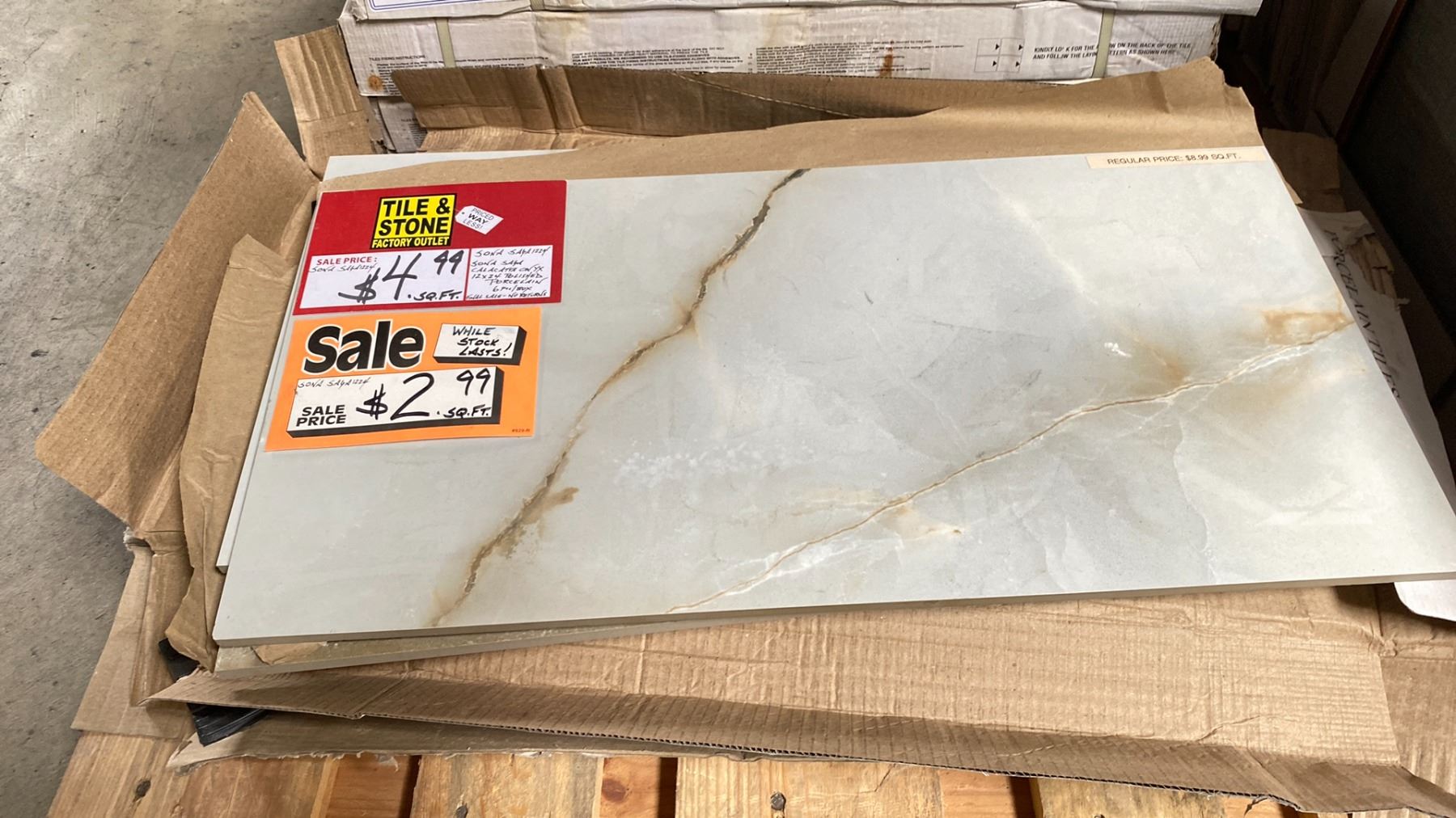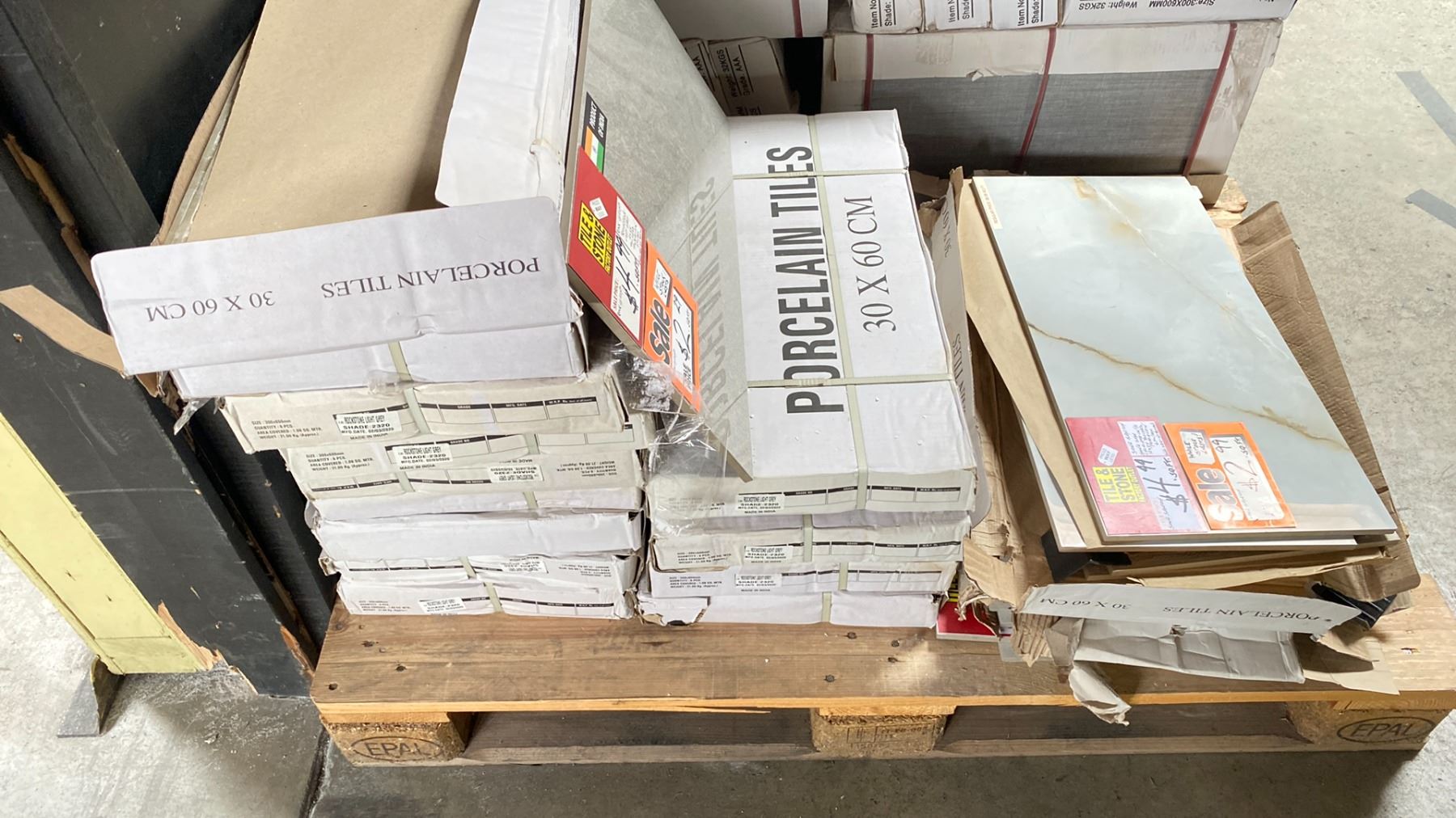 PALLET OF ASSORTED 12 X 24" TILE; 13 BOXES OF ROCKSTONE LIGHT GREY (APPROX 156SQ.FT. TOTAL) & ASSORTED BOXES OF TILES