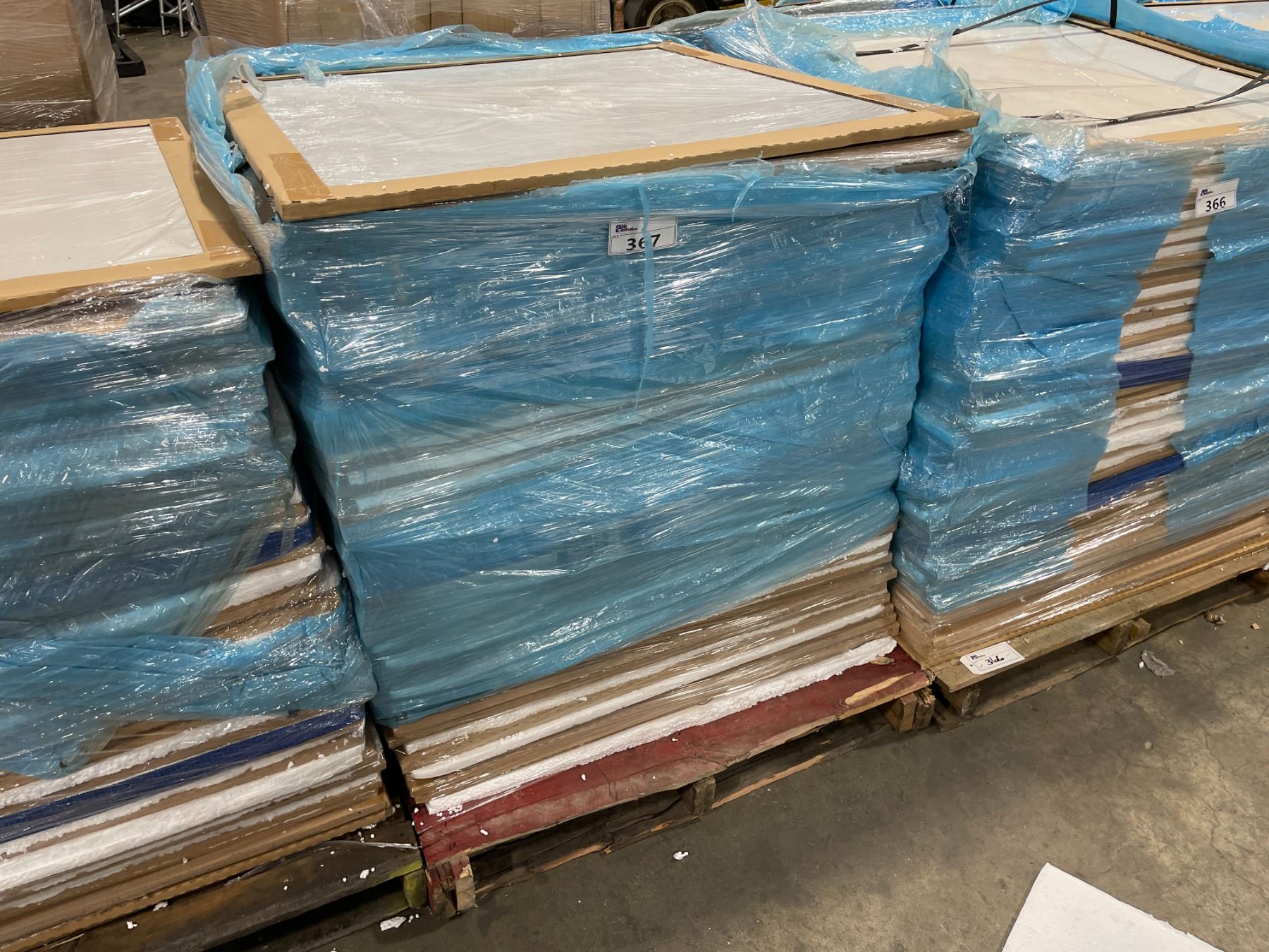 PALLET OF ASSORTED 39 1/4  X 39 1/4  DESIGNER CERAMIC FLOOR TILES *APPROXIMATELY 28 TILES PER