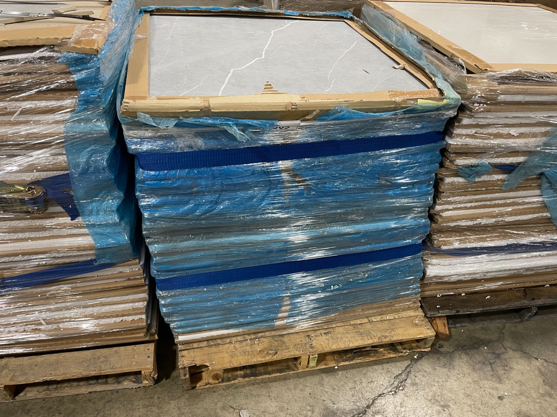 PALLET OF ASSORTED 39 1/4" X 39 1/4" DESIGNER CERAMIC FLOOR TILES *APPROXIMATELY 28 TILES PER PALLET*
