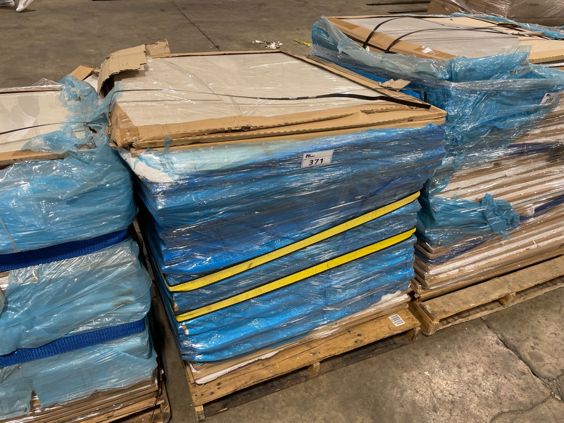 PALLET OF ASSORTED 39 1/4  X 39 1/4  DESIGNER CERAMIC FLOOR TILES *APPROXIMATELY 28 TILES PER