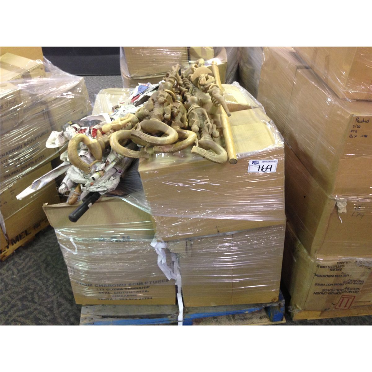 PALLET OF ASSORTED AFRICAN FIGURES, SCULPTURES AND COLLECTABLES. EACH PALLET CONTAINS HUNDREDS OF PIECES AND THOUSANDS OF DOLLARS IN RETAIL VALUE