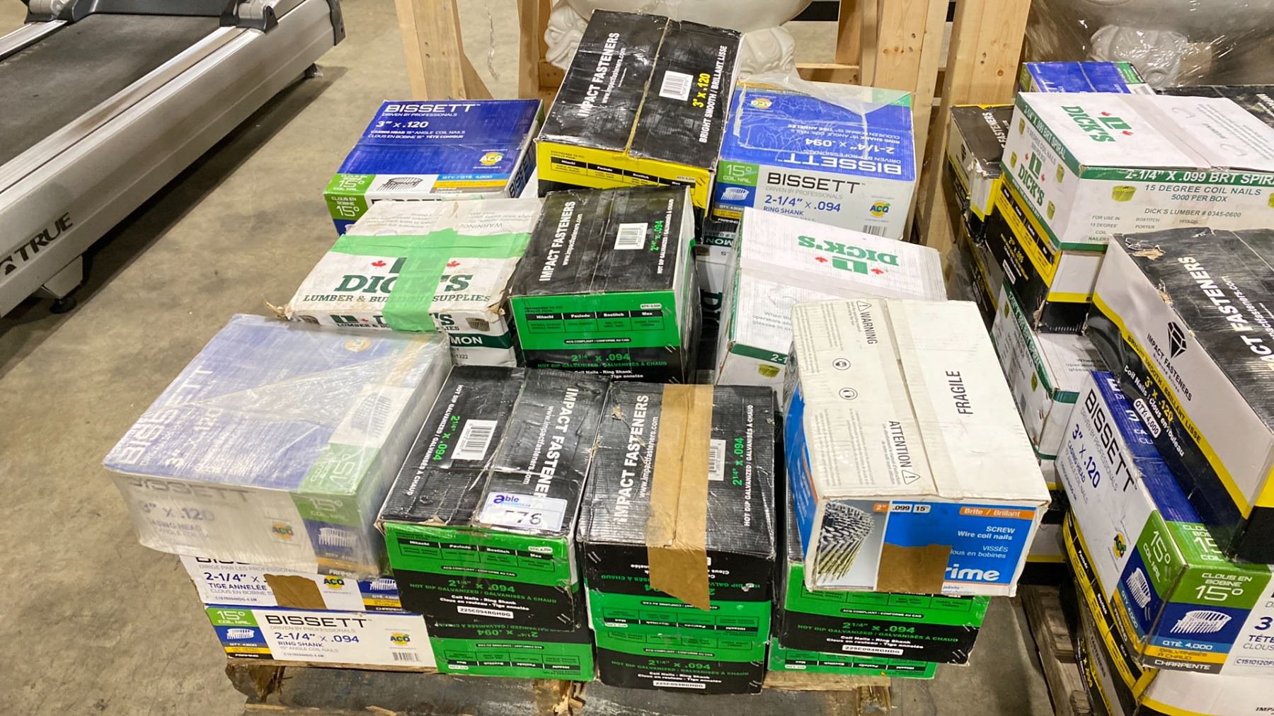 PALLET OF ASSORTED BOXES OF INDUSTRIAL COIL NAILS
