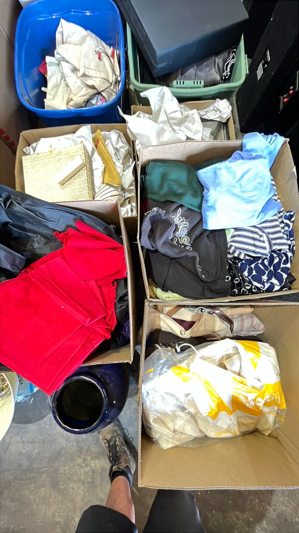 PALLET OF ASSORTED CLOTHING, DECORATIVE VASE, GLASSWARE, DECORATIVE PLATES & MORE *MUST TAKE ALL ON PALLET*