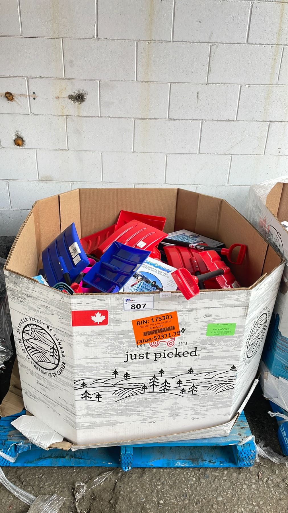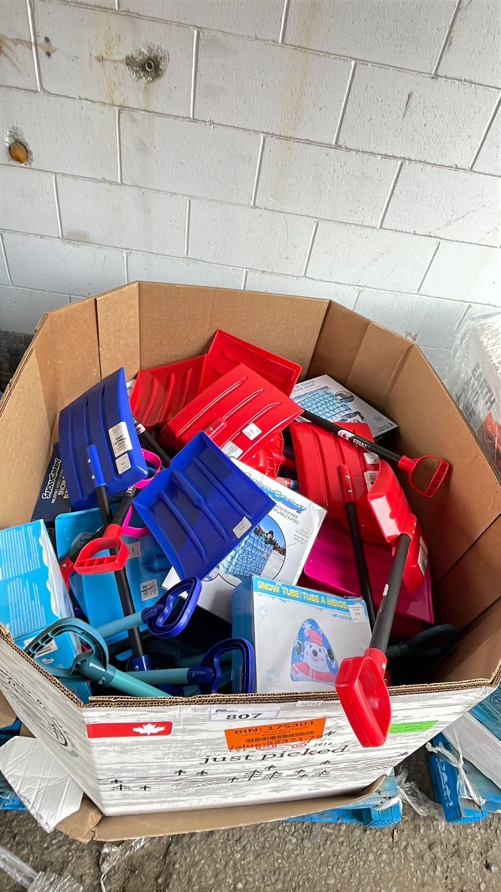 PALLET OF ASSORTED COLORS/STYLES SNOW SHOVELS & SNOW INFLATABLES * MUST TAKE ALL ON PALLET *