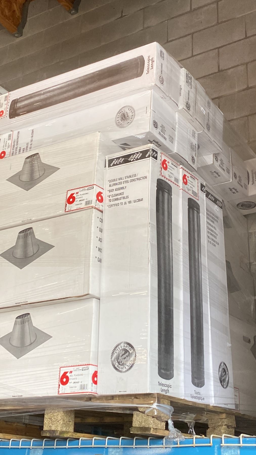 PALLET OF ASSORTED COMMERCIAL 6" SUPER PRO/SUPER VENT FIREPLACE VENTING, DUCTING & COMPONENTS *MUST TAKE ALL**LAST DAY REMOVAL - SAT*