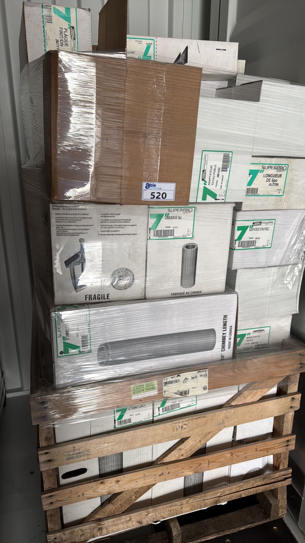 PALLET OF ASSORTED COMMERCIAL 7" SUPER PRO/SUPER VENT FIREPLACE VENTING, DUCTING & COMPONENTS *MUST TAKE ALL*