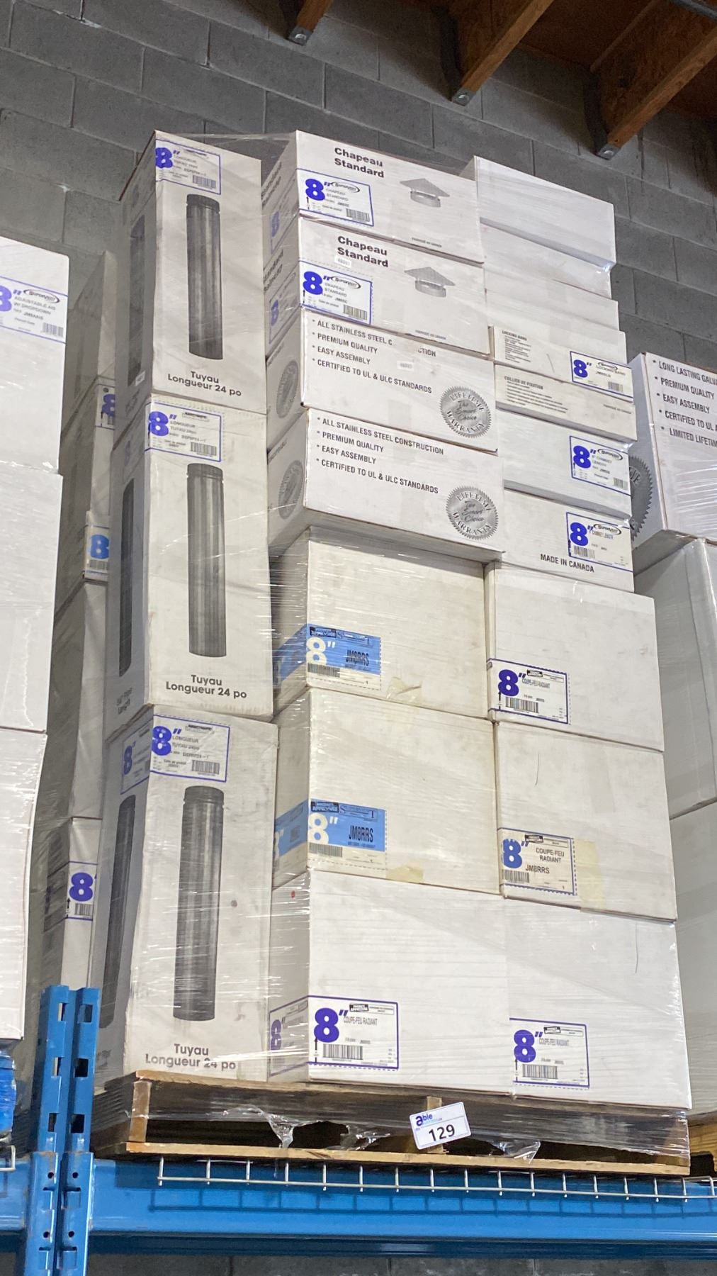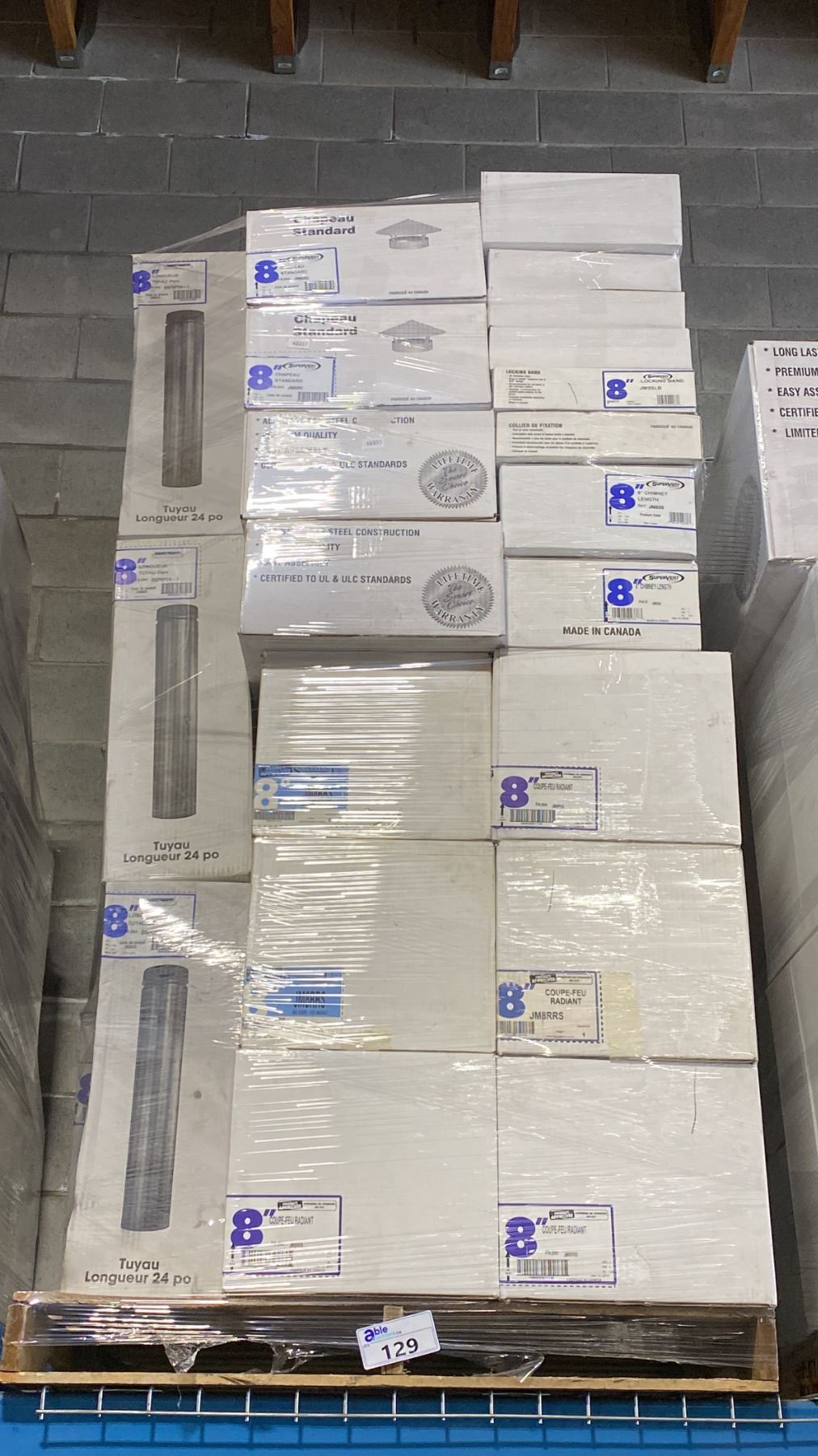 PALLET OF ASSORTED COMMERCIAL 8" SUPER PRO/SUPER VENT FIREPLACE VENTING, DUCTING & COMPONENTS *MUST TAKE ALL**LAST DAY REMOVAL - SAT*