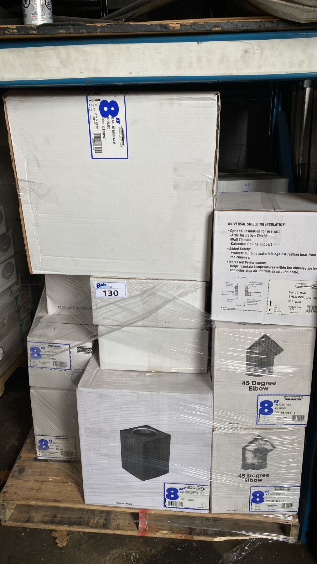 PALLET OF ASSORTED COMMERCIAL 8" SUPER PRO/SUPER VENT FIREPLACE VENTING, DUCTING & COMPONENTS *MUST TAKE ALL*