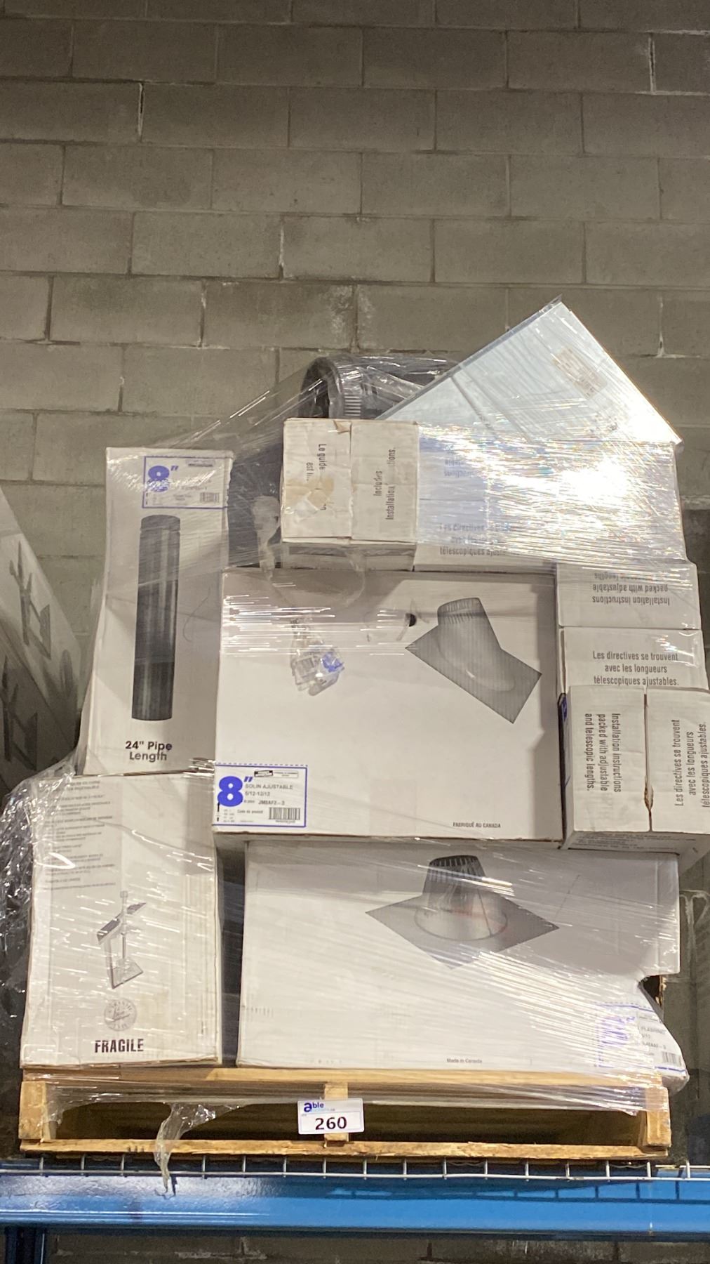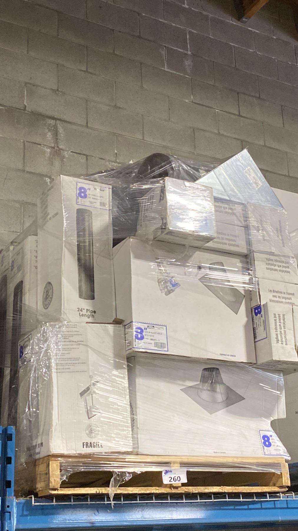 PALLET OF ASSORTED COMMERCIAL 8" SUPER PRO/SUPER VENT FIREPLACE VENTING, DUCTING & COMPONENTS *MUST TAKE ALL**LAST DAY REMOVAL - SAT*