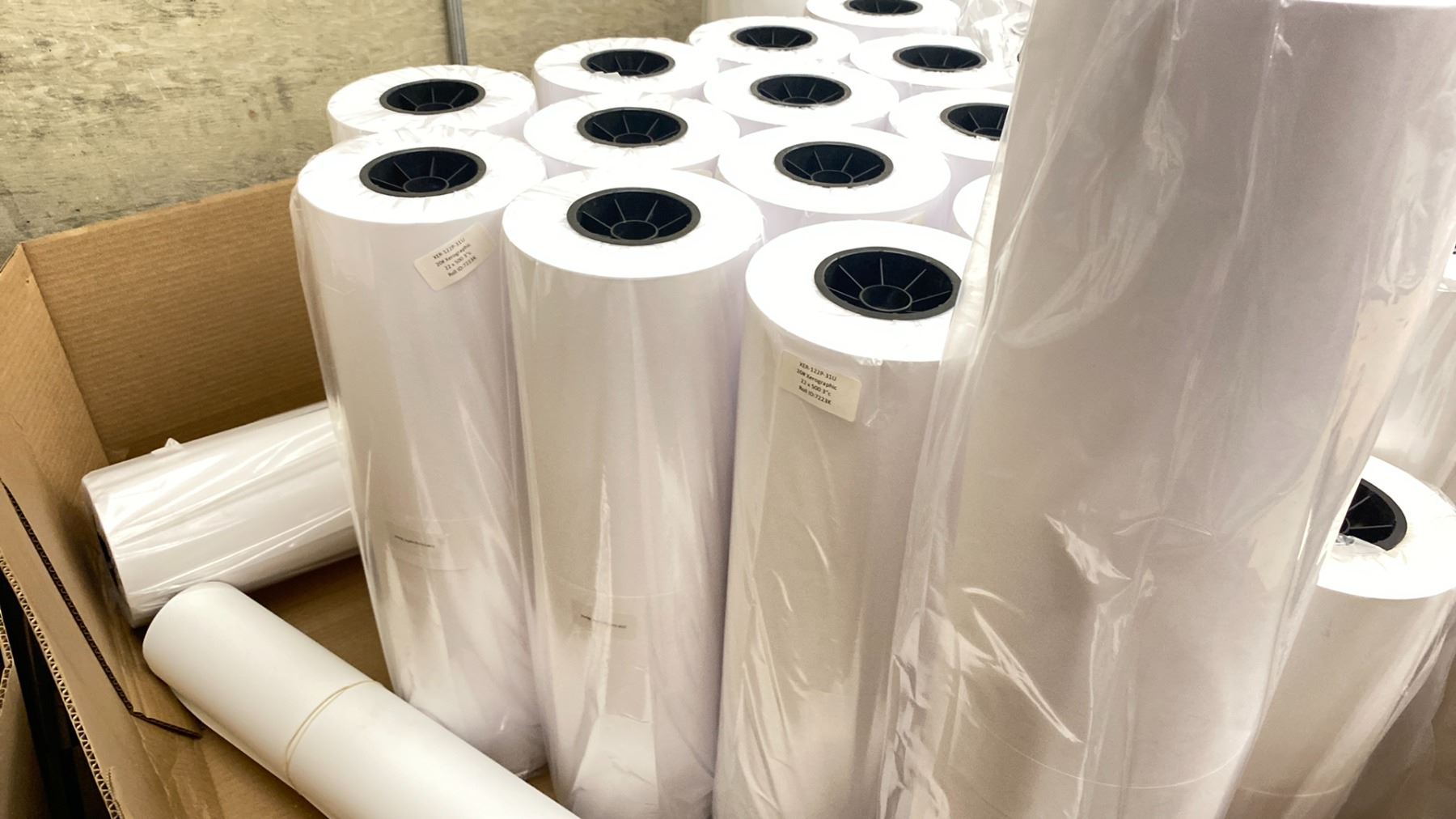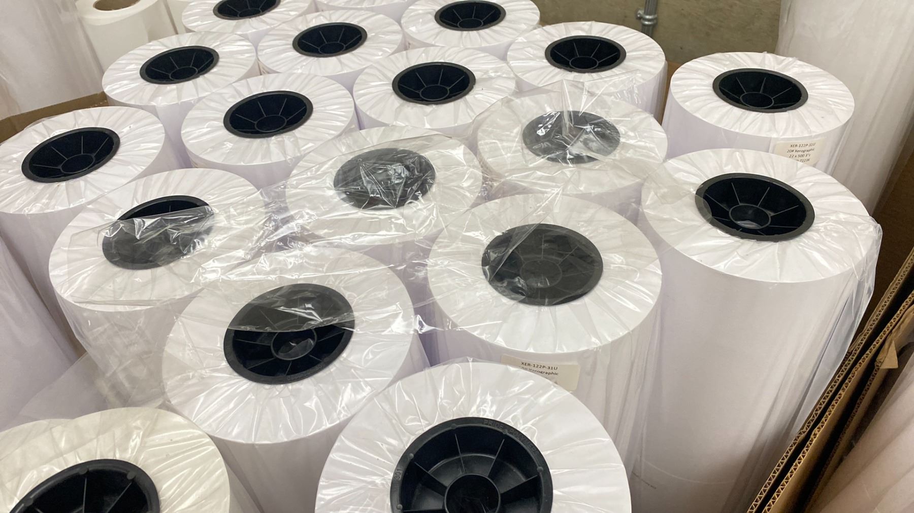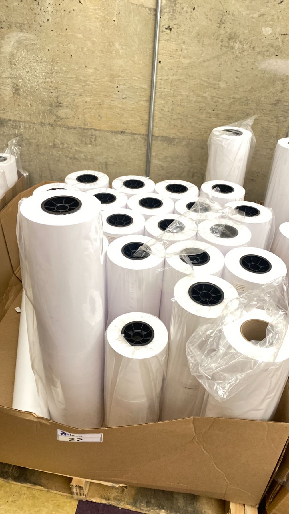 PALLET OF ASSORTED COMMERCIAL PRINT SHOP ROLLS OF PAPER / PAPER STOCK