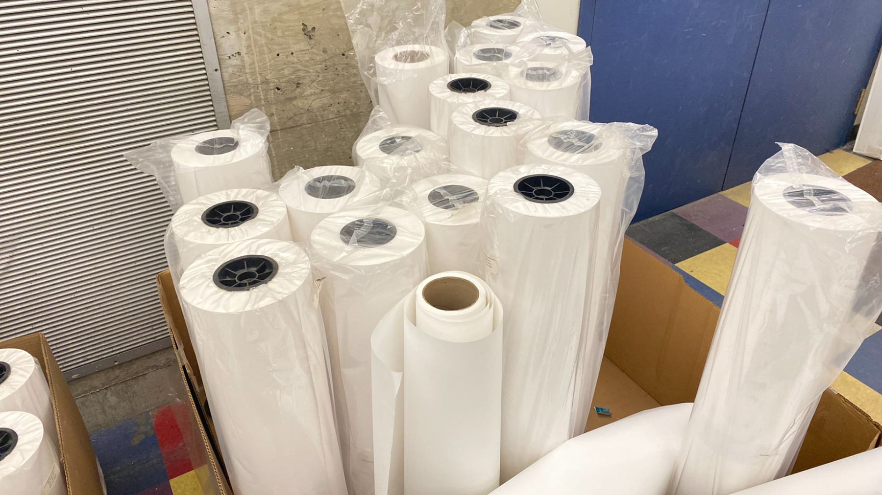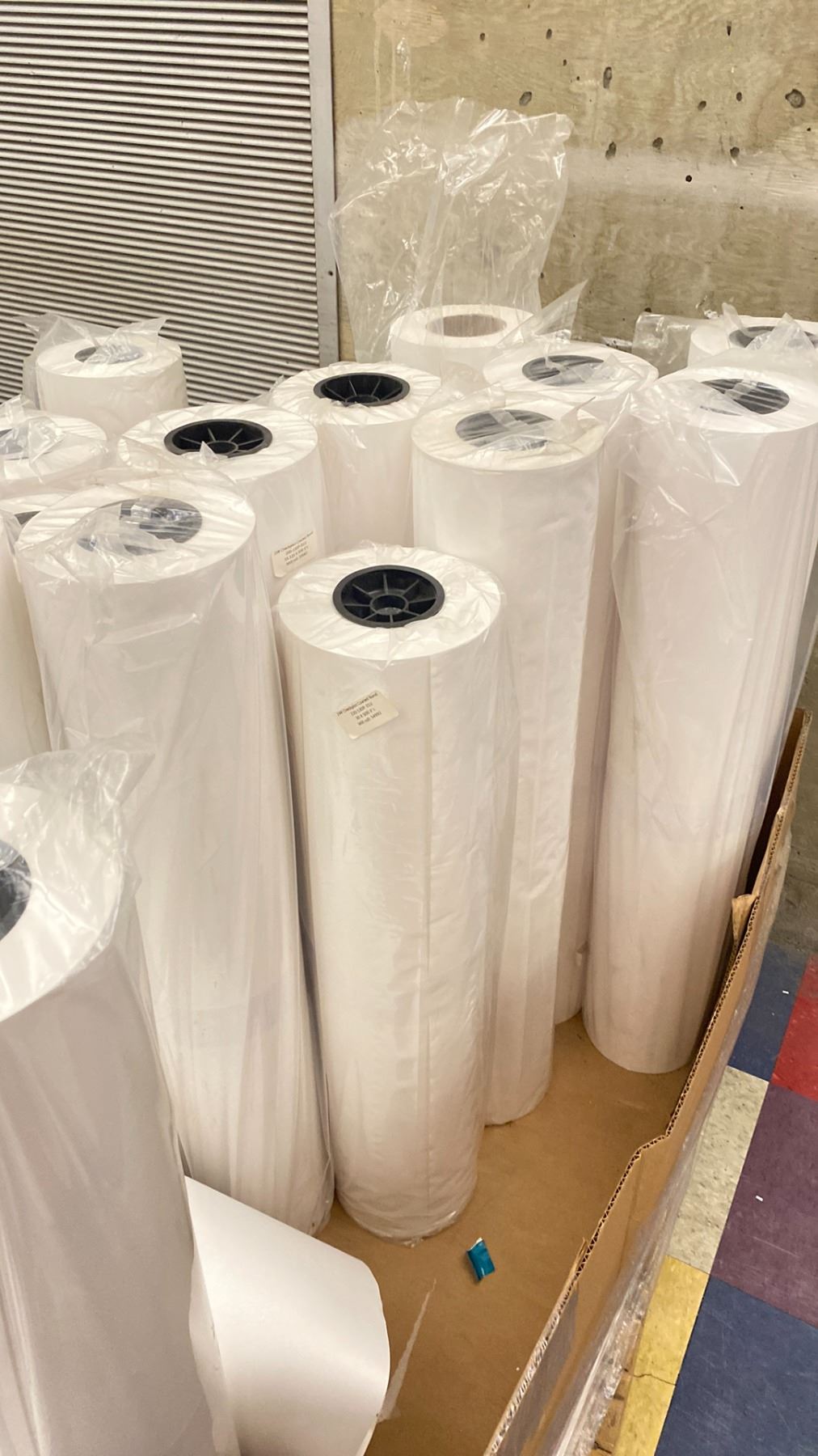 PALLET OF ASSORTED COMMERCIAL PRINT SHOP ROLLS OF PAPER / PAPER STOCK