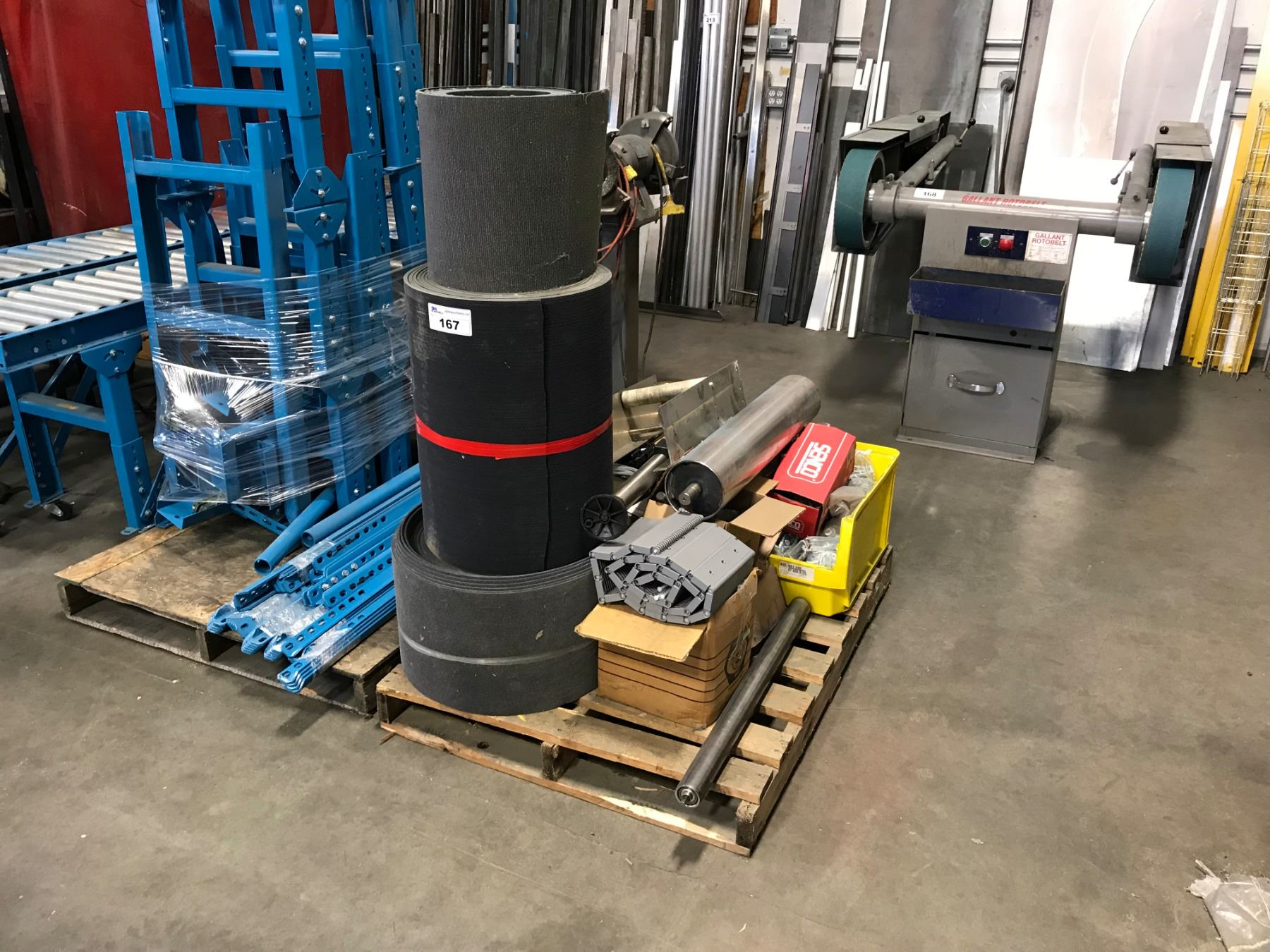 PALLET OF ASSORTED CONVEYOR BELTS & PARTS