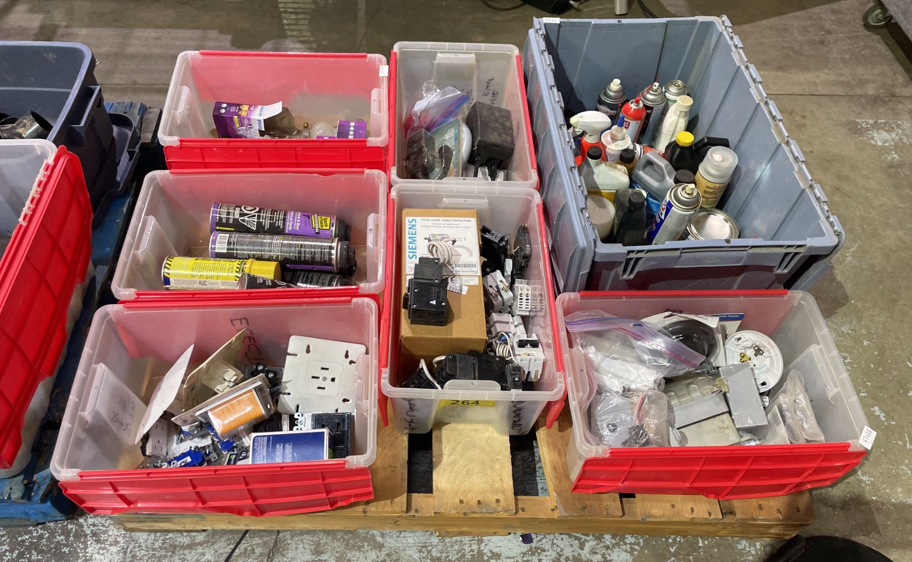 PALLET OF ASSORTED ELECTRICAL, WINDOW & DOOR FOAM SEALANT, LIGHT BULBS, & ASSORTED LUBRICANTS *MUST TAKE ALL ON PALLET*
