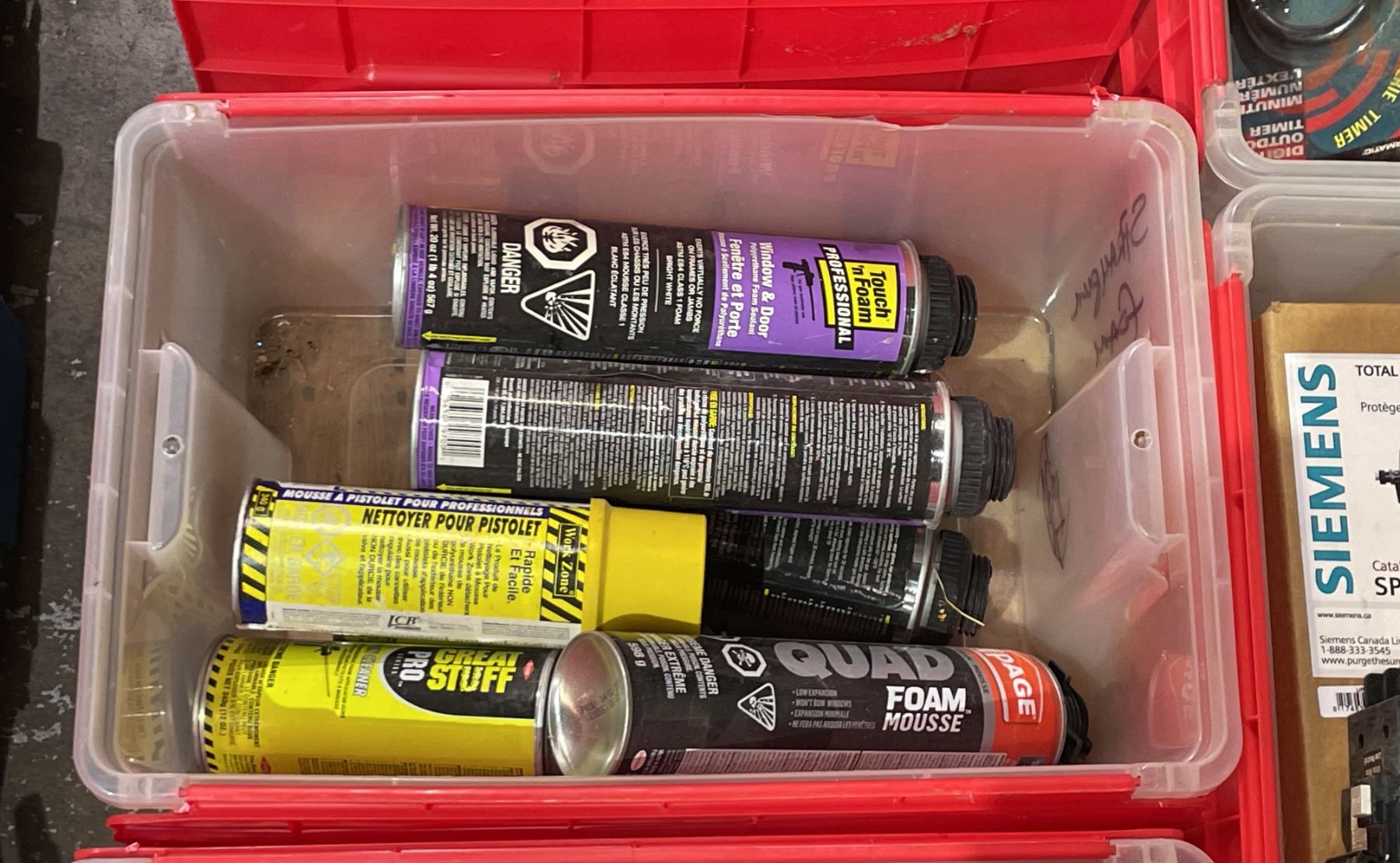 PALLET OF ASSORTED ELECTRICAL, WINDOW & DOOR FOAM SEALANT, LIGHT BULBS, & ASSORTED LUBRICANTS *MUST