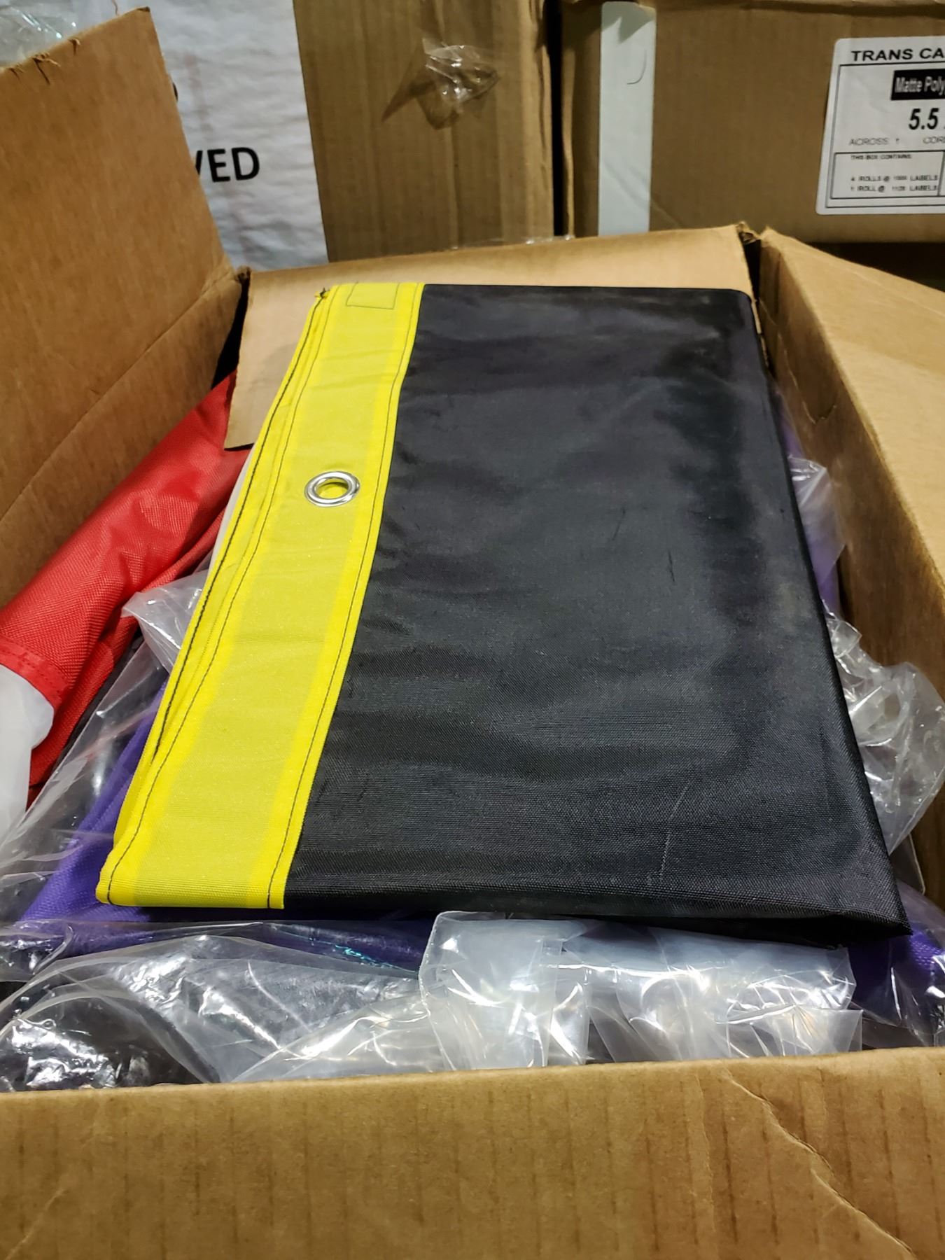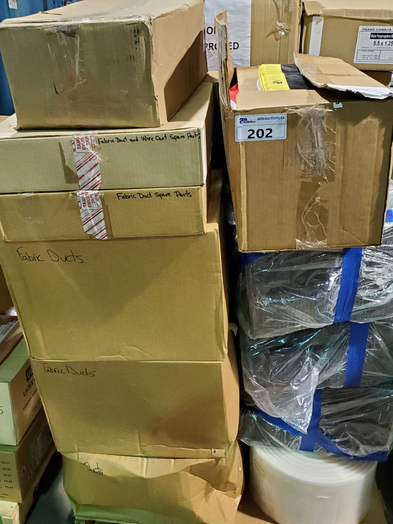 PALLET OF ASSORTED FABRIC DUCTS, TRANSFER PLANTER POTS, AND STICKERS ROLLS
