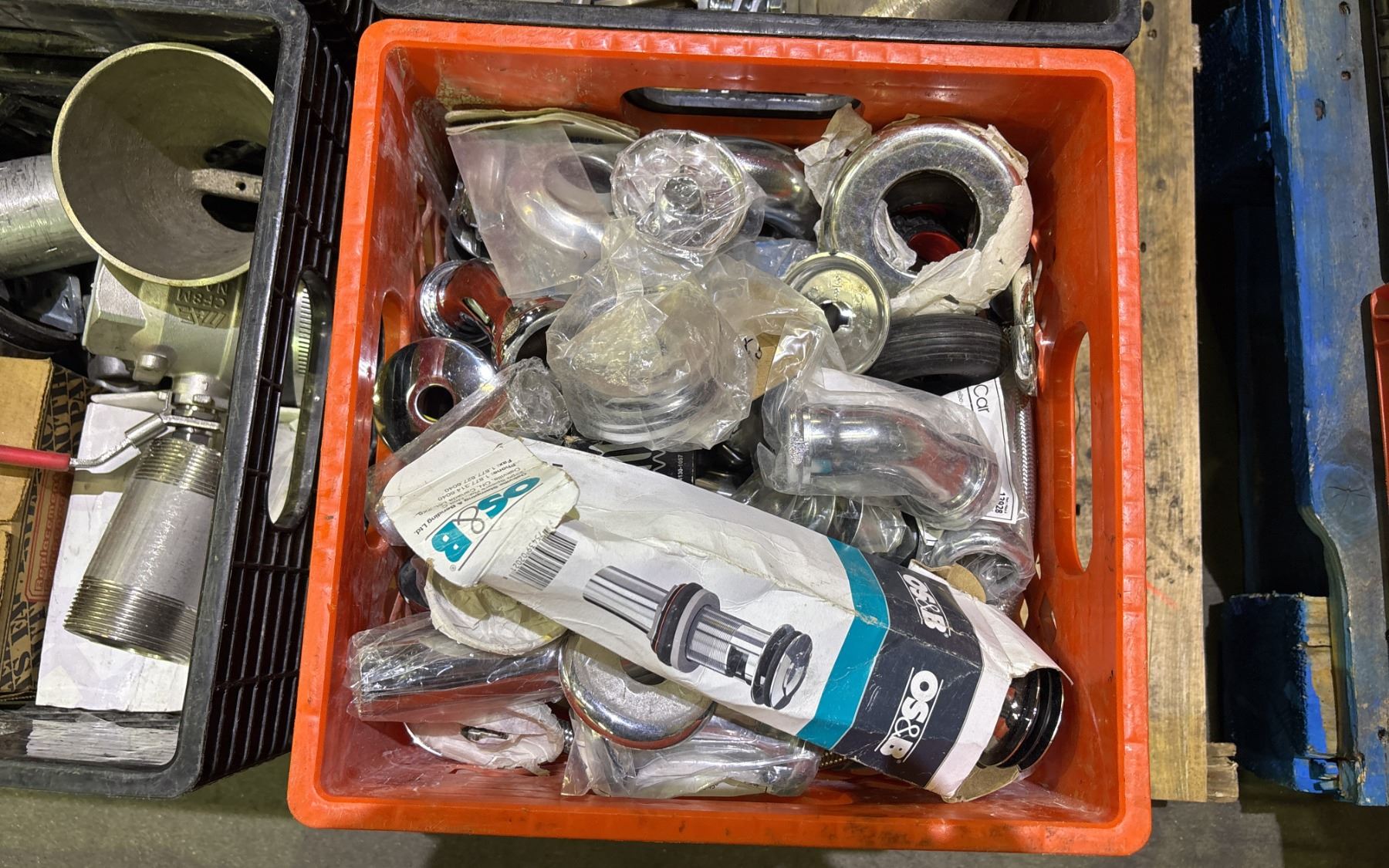 PALLET OF ASSORTED FITTINGS, PVC PIPE CONNECTORS, HARDWARE & MORE *MUST TAKE ALL ON PALLET*