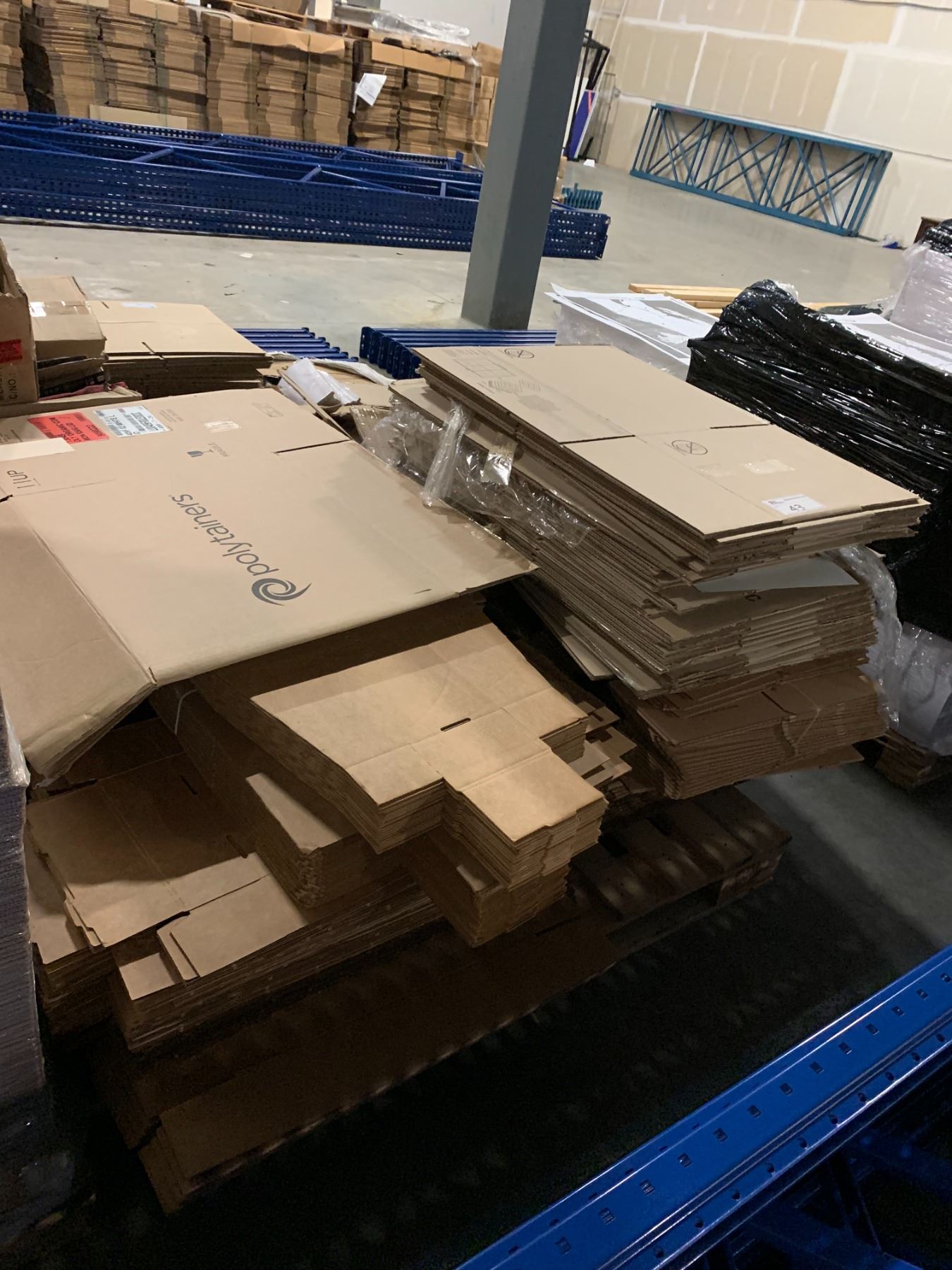 PALLET OF ASSORTED FLATTENED PACKING BOXES