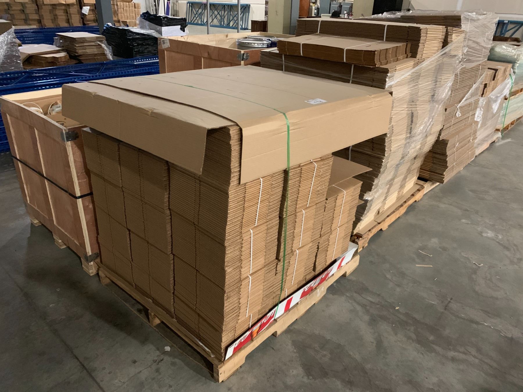 PALLET OF ASSORTED FLATTENED PACKING BOXES
