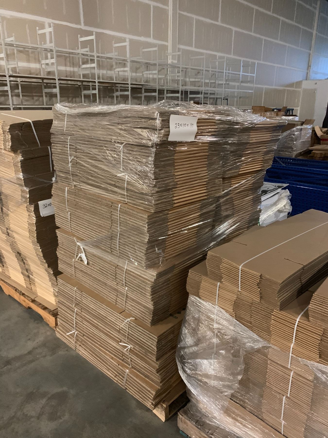 PALLET OF ASSORTED FLATTENED PACKING BOXES
