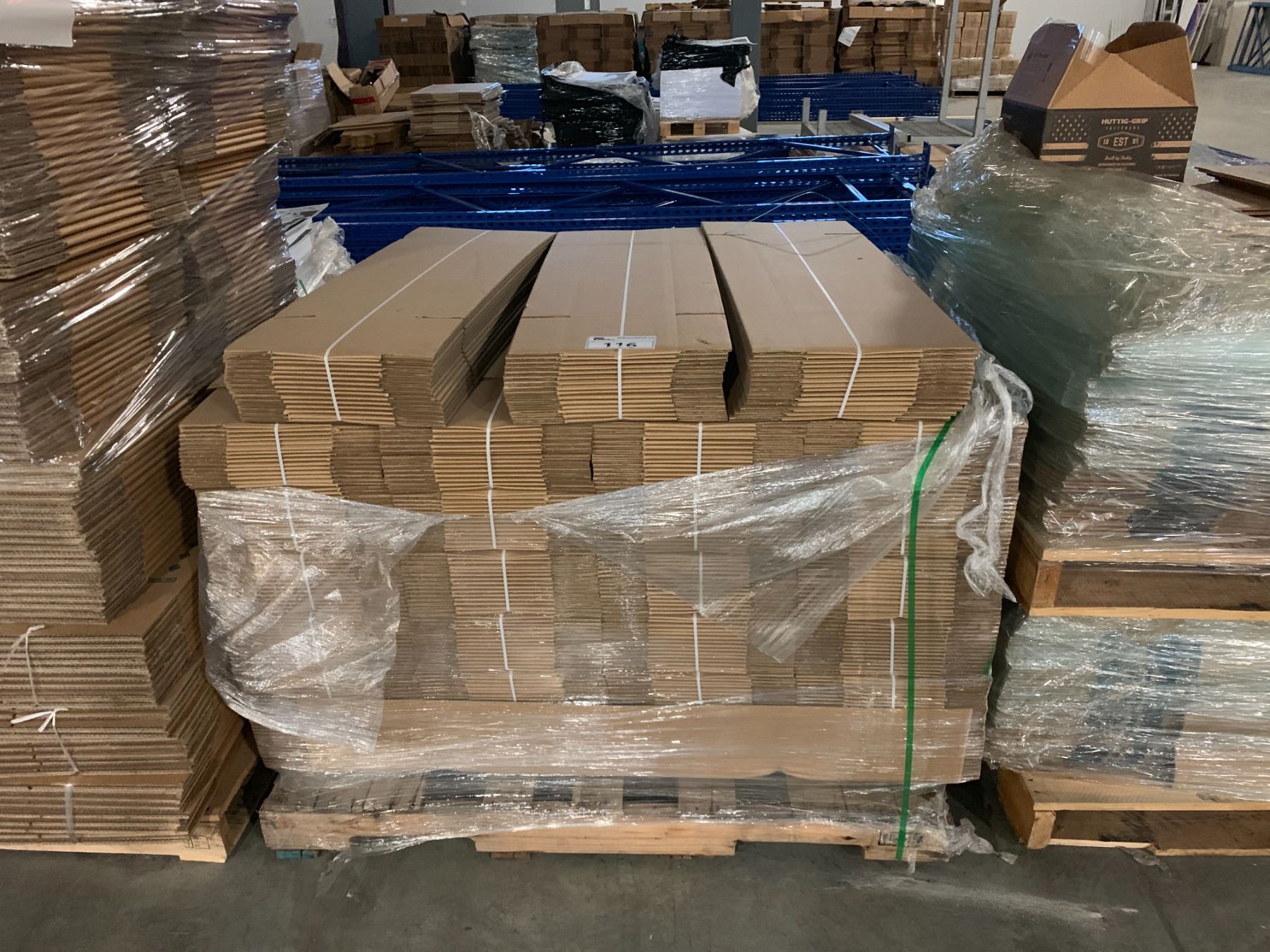 PALLET OF ASSORTED FLATTENED PACKING BOXES