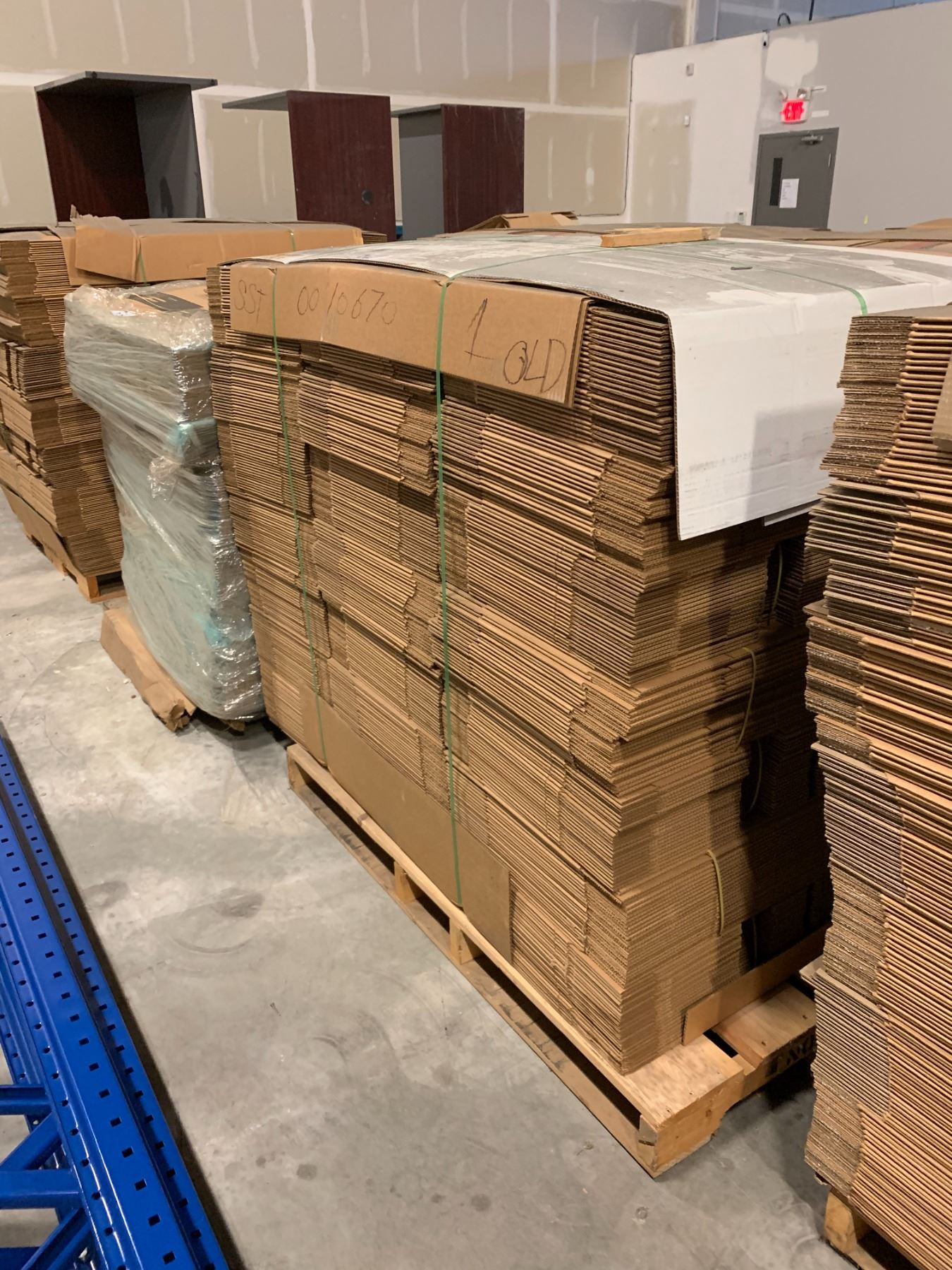 PALLET OF ASSORTED FLATTENED PACKING BOXES