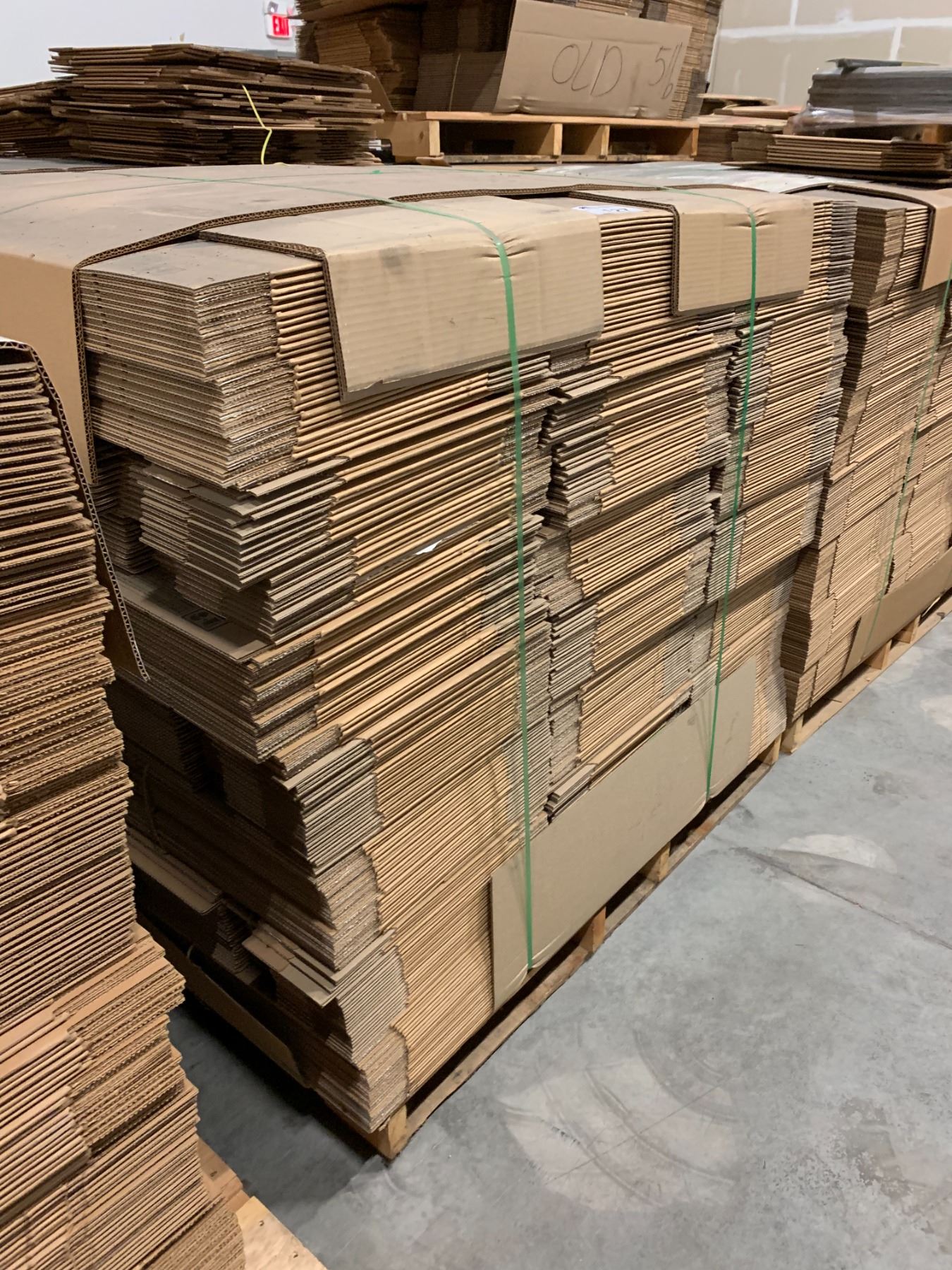 PALLET OF ASSORTED FLATTENED PACKING BOXES