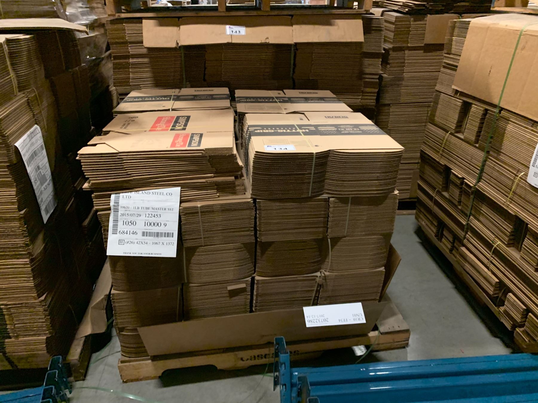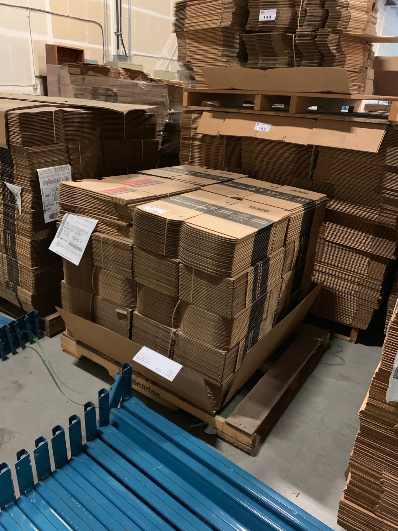 PALLET OF ASSORTED FLATTENED PACKING BOXES