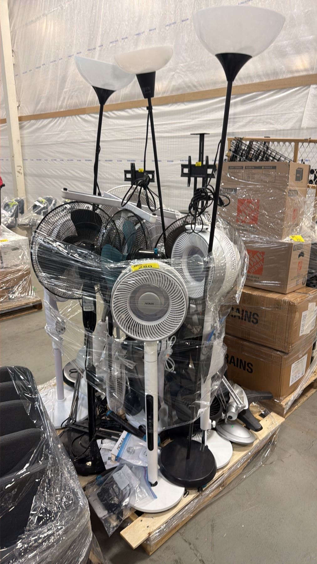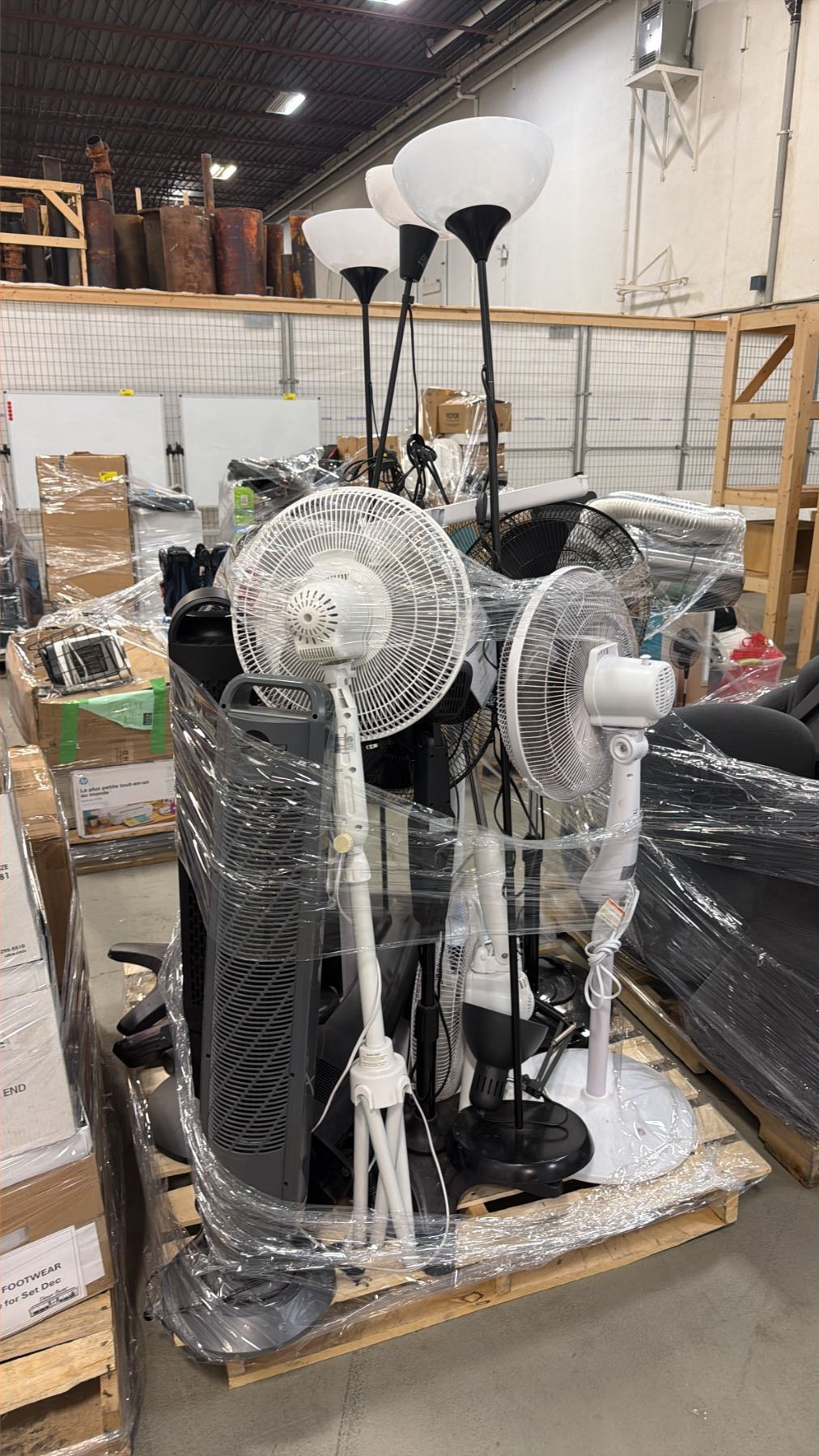 PALLET OF ASSORTED FLOOR FANS & FLOOR LAMPS