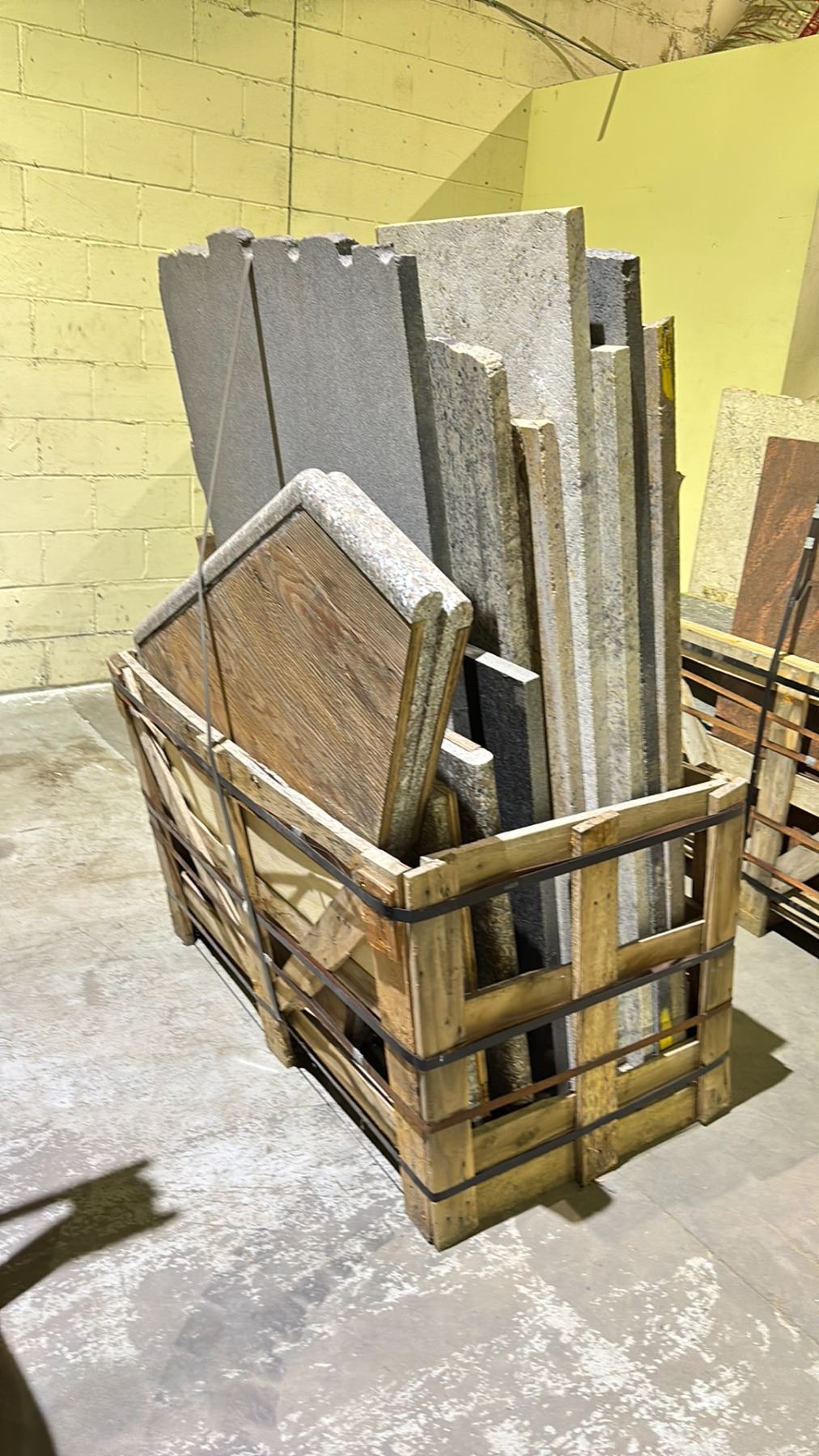 PALLET OF ASSORTED GRANITE SLAB PIECES (SOME BROKEN) - OFF SITE PICK UP AT 26251 FRASER HWY