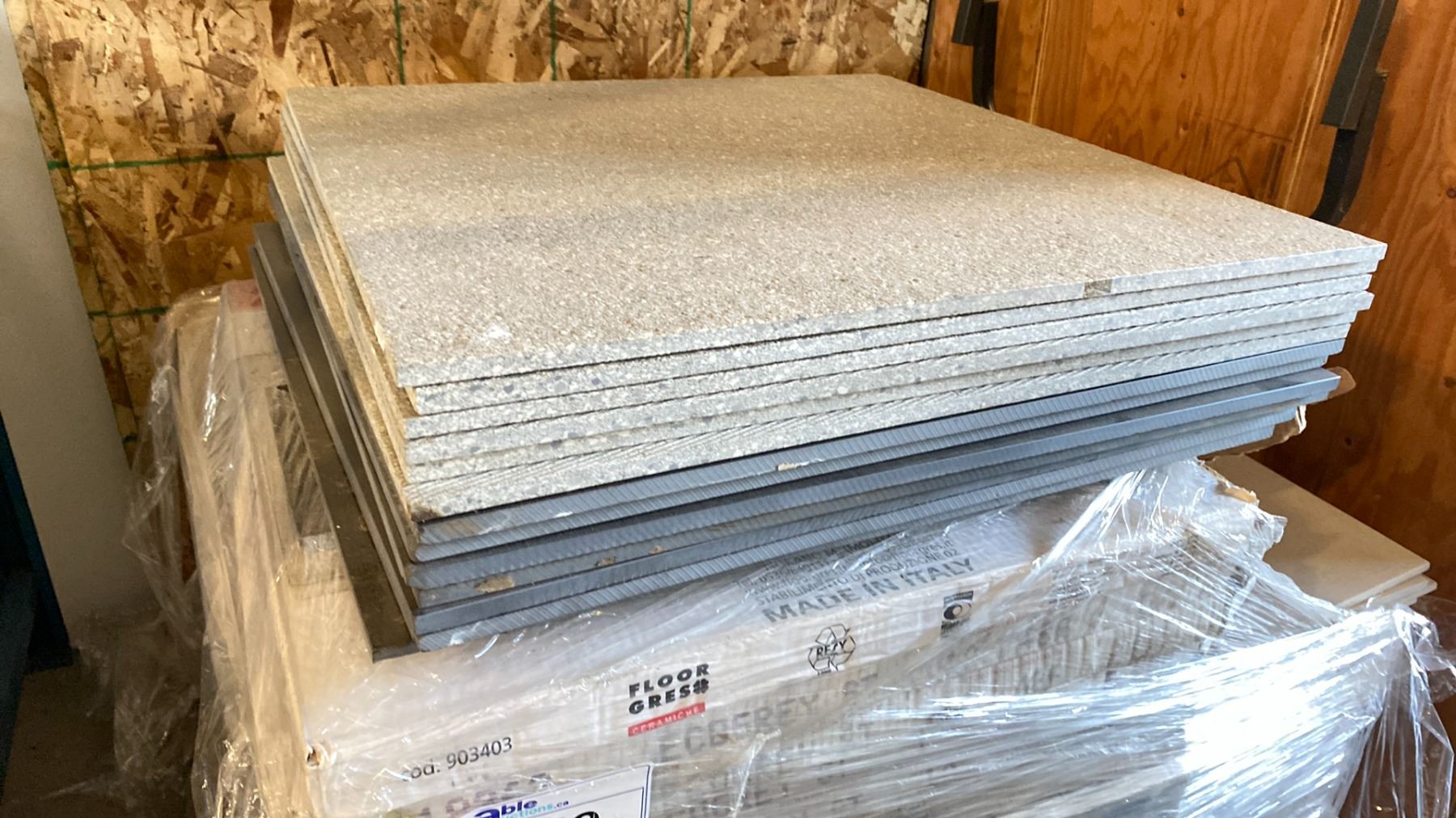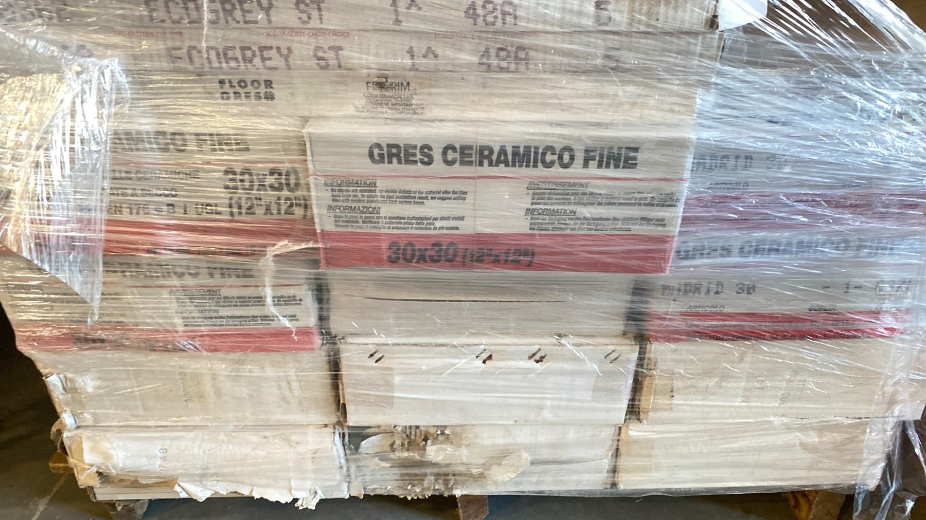 PALLET OF ASSORTED GREY/CHARCOAL TILE APPROX 31-24" X 24",APPROX 36 BOXES OF 12" X 12"